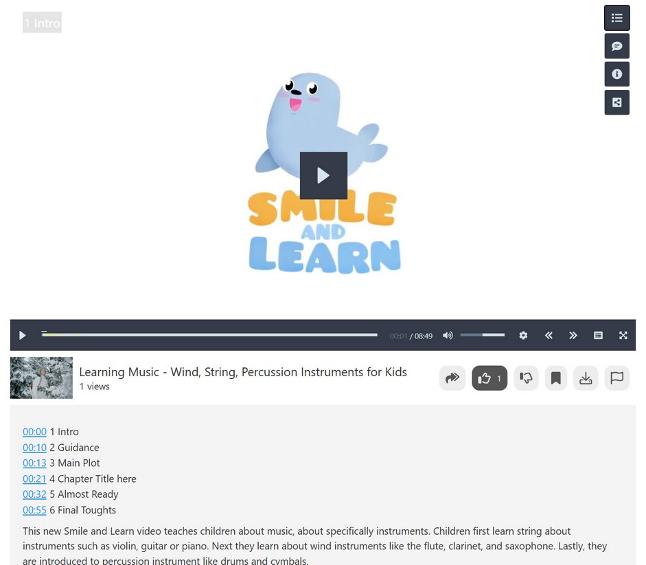To view each video in detail, go to View Video which will open dialog where you can see video together with heatmap graph below it. You can seek through the video and compare most watched parts of each video on the graph.