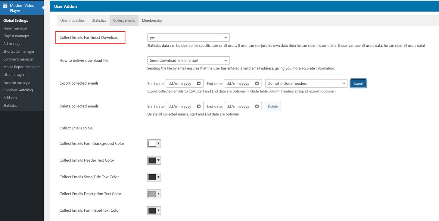 Player and playlist export feature requires PHP zip extension enabled.