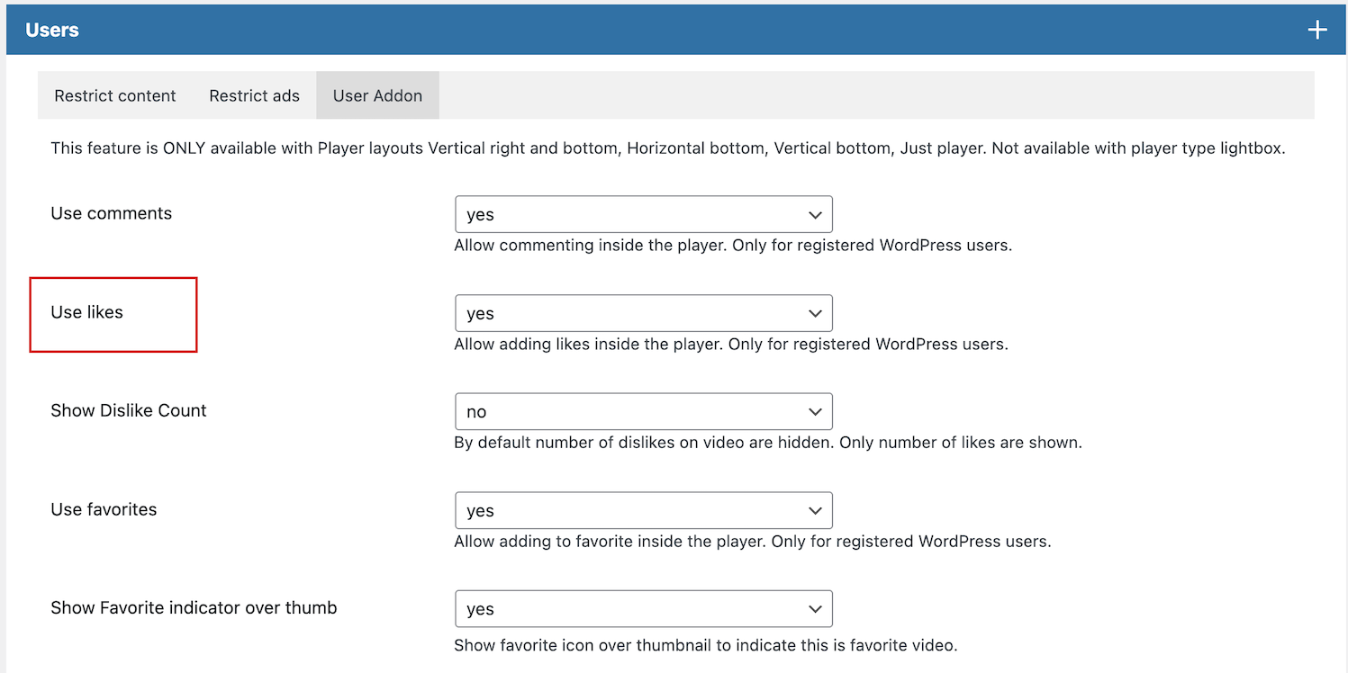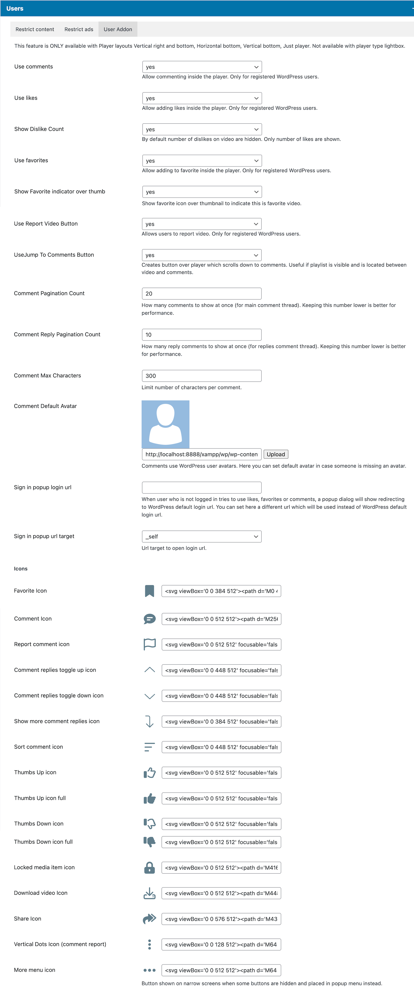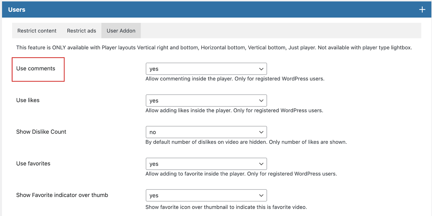 Comments can be enabled per Player, meaning some Players can use comments, while other not.
