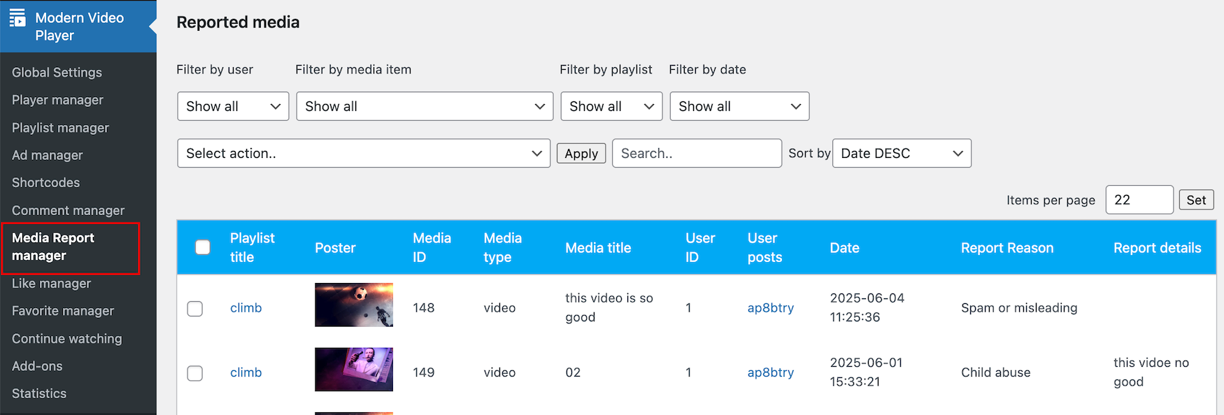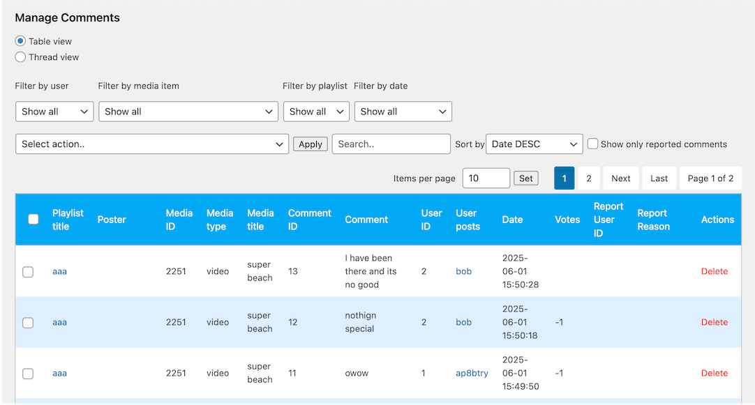 Reported comments will be listed inside Comment manager section.