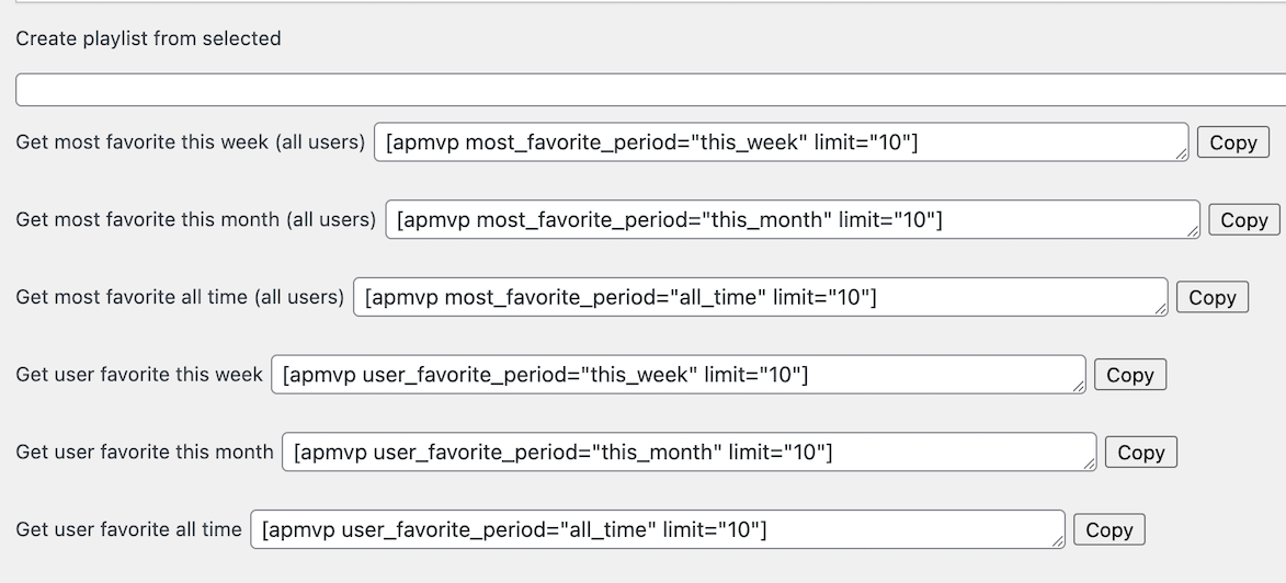 Audio shortcodes:
