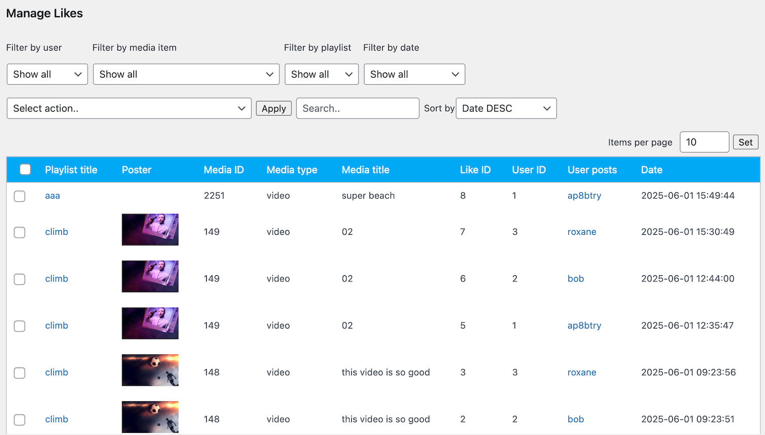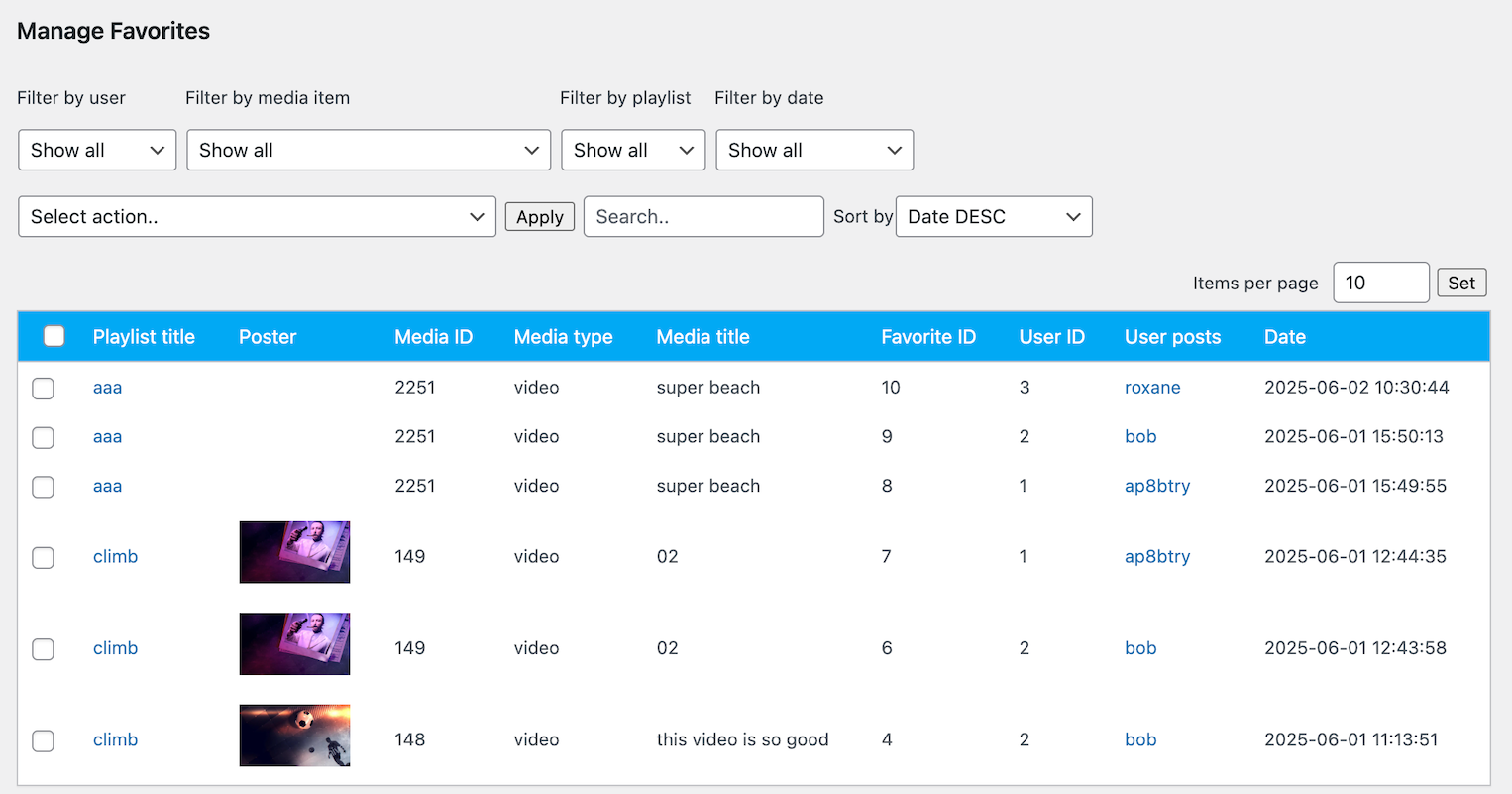 You can show data per individual playlist and per WordPress user.