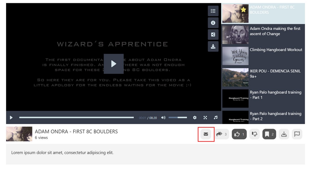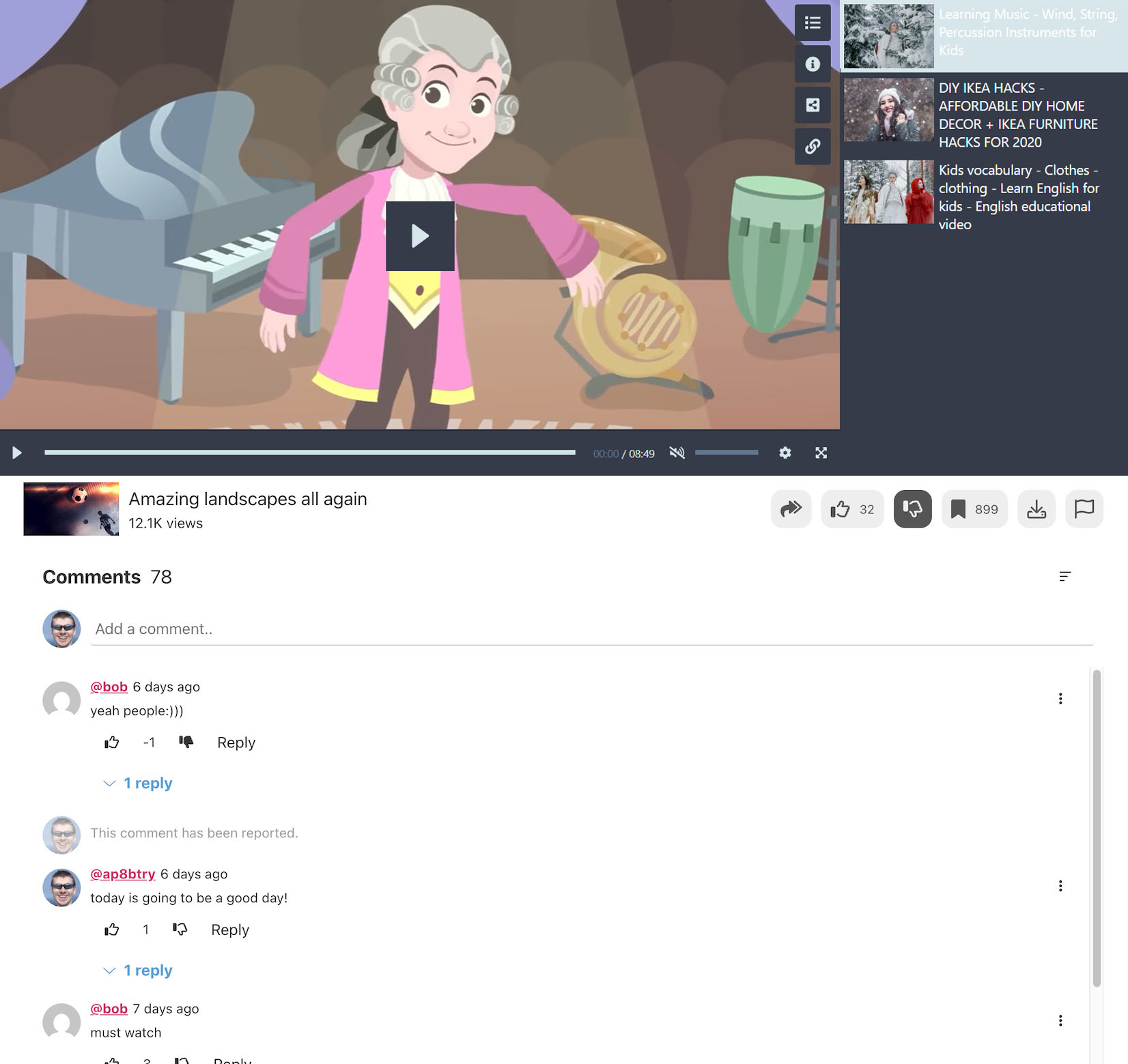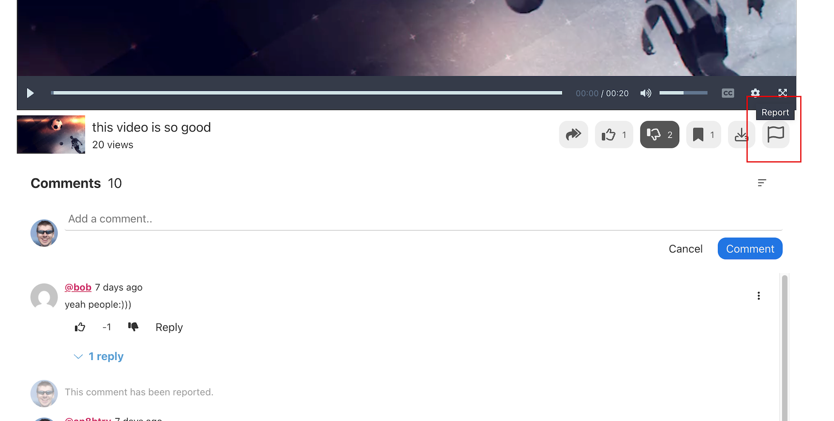 User data by default is placed below player. Optional button for quick jumping to comments can be placed above video player: