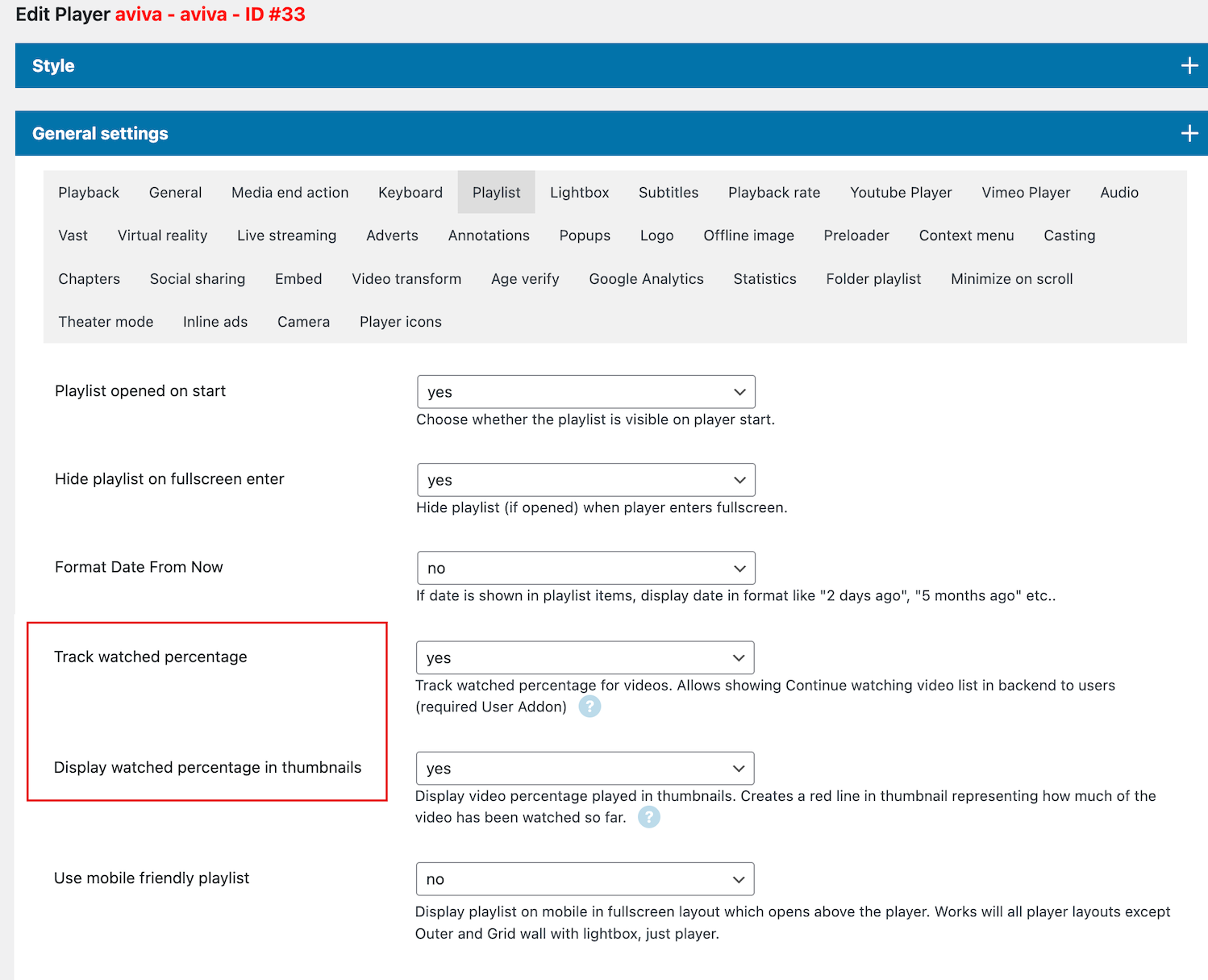 This guide shows how to use player from Modern video player Player manager in shelf. Note that the following options need to be set in Player manager / Edit player for this to work.