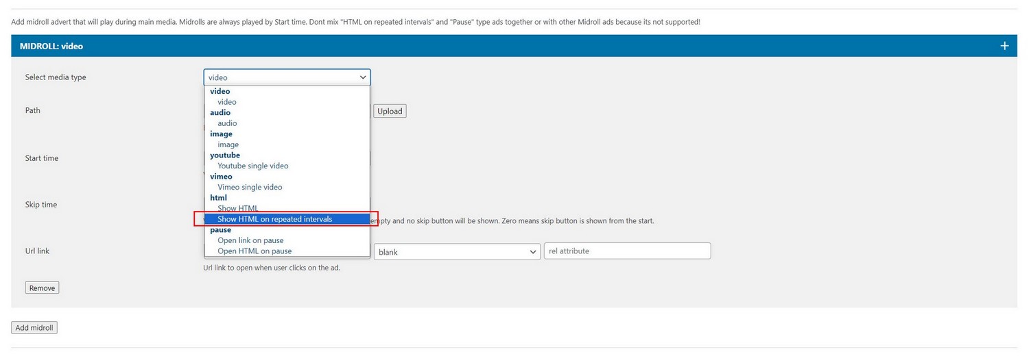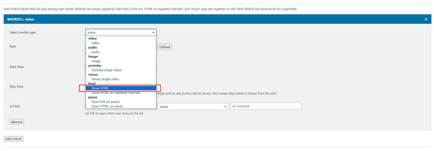 So you will get the best performance using mp4 videos. Also, image poster is recommended for each video and it should be the same size as the video itself. The best is the take screenshot from first frame of the video itself. This ensures image poster is the same size as the video and provides the best viewing experience (poster is shown on start until video starts playing, then video is faded in)