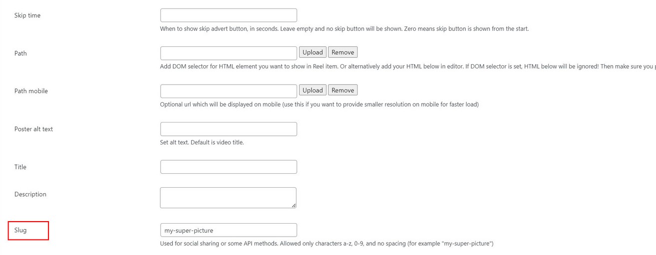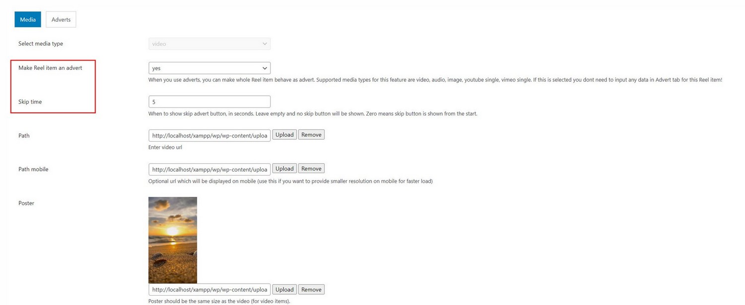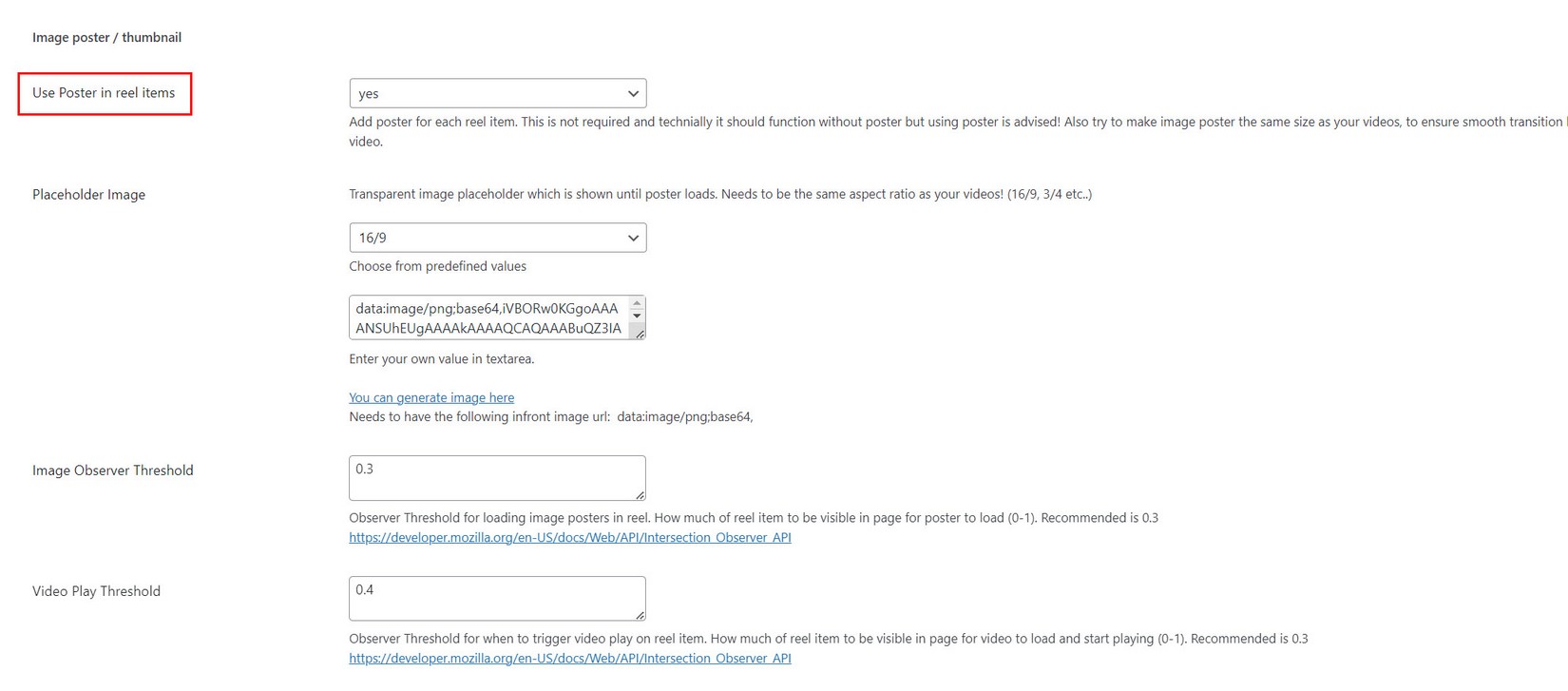Adding image poster is recommended when using videos in Reel items. Poster serves multiple purpose, keeping aspect ratio until video loads, and faster loading since only image is loaded on start instead of video.