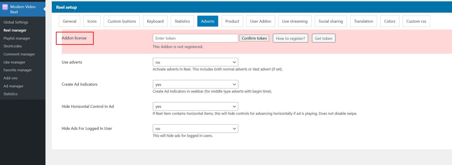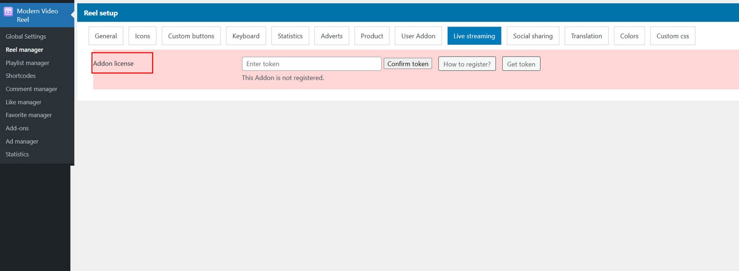 Register plugin inside Reel manager / Edit Reel / Live Streaming tab