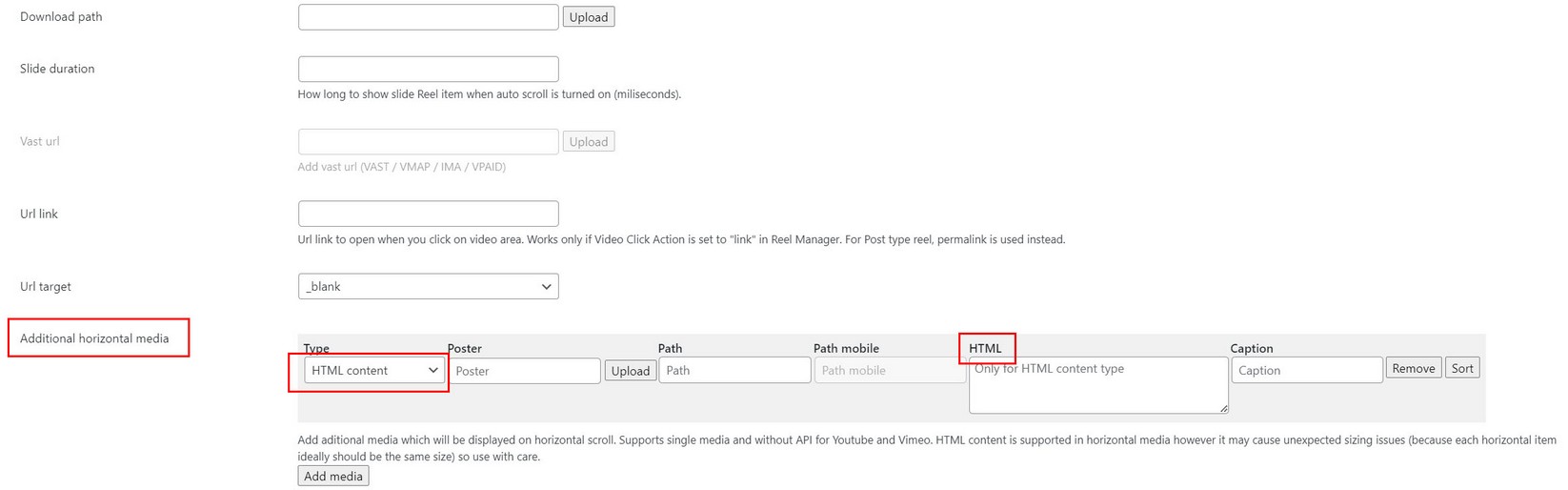 Individual link to HLS can be added to both vertical and horizontal media items in Reel.