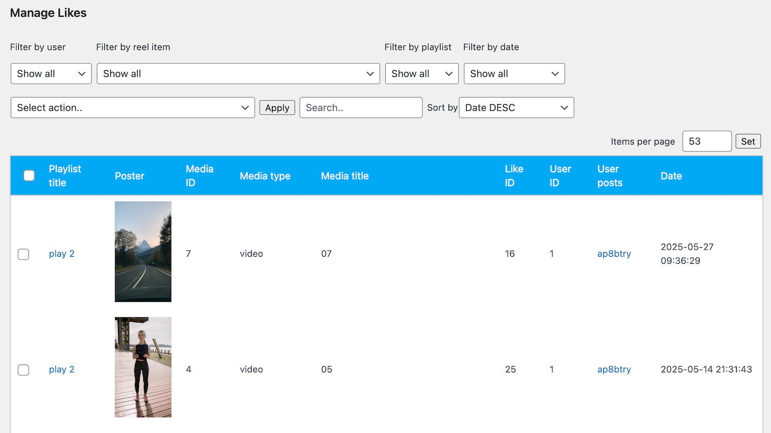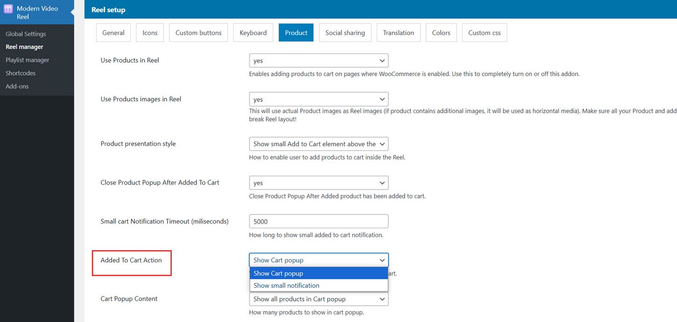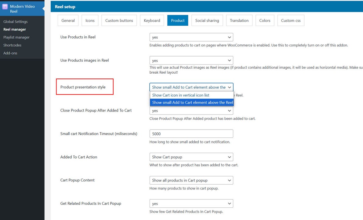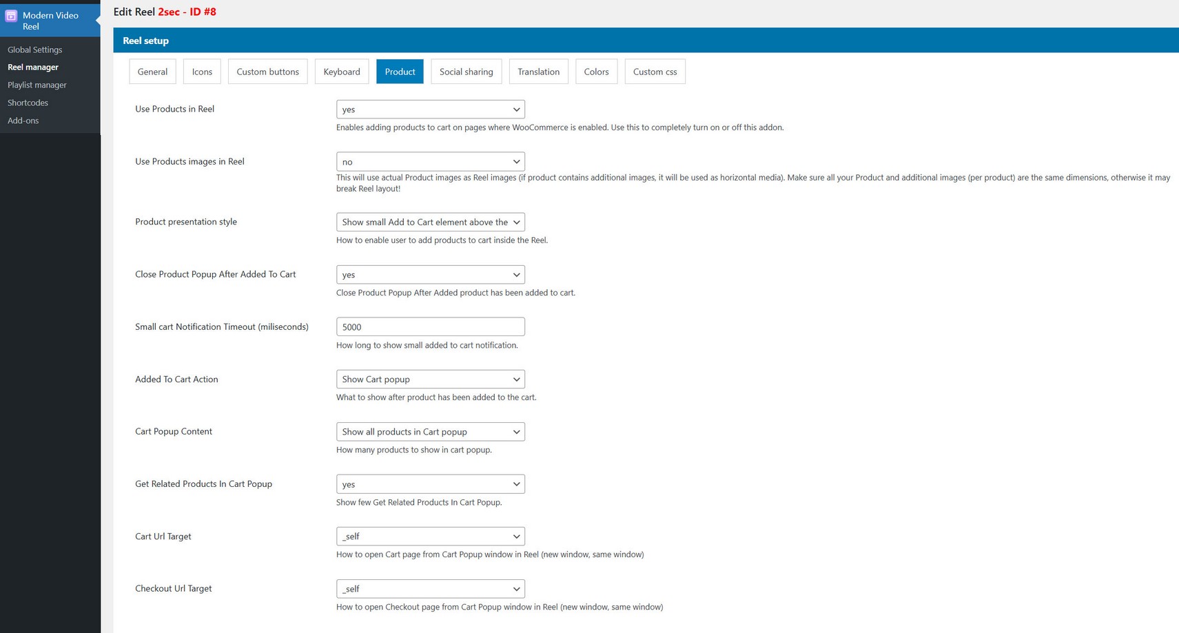 Once you have created new Reel and playlist, Go to Shortcodes plugin menu and get shortcode (choose reel and playlist for your shortcode):