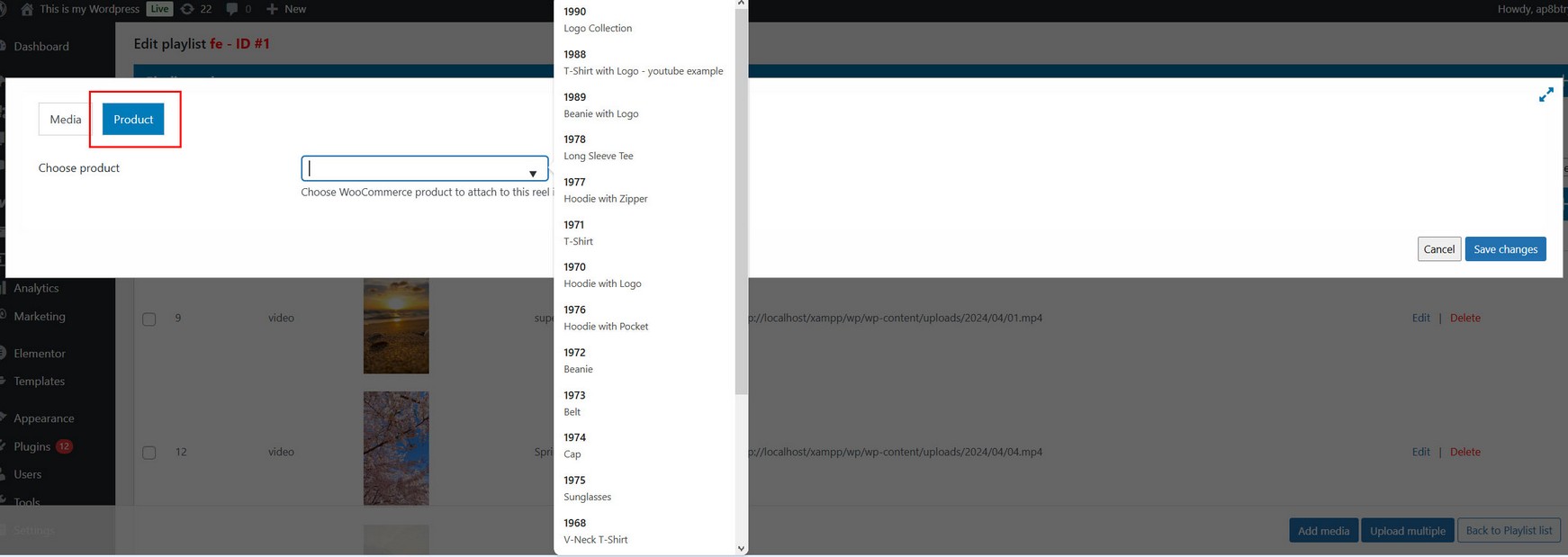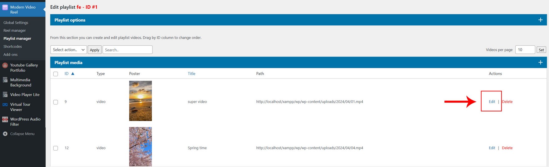 Add videos to Reel items in Edit Playlist / Add media dialog: