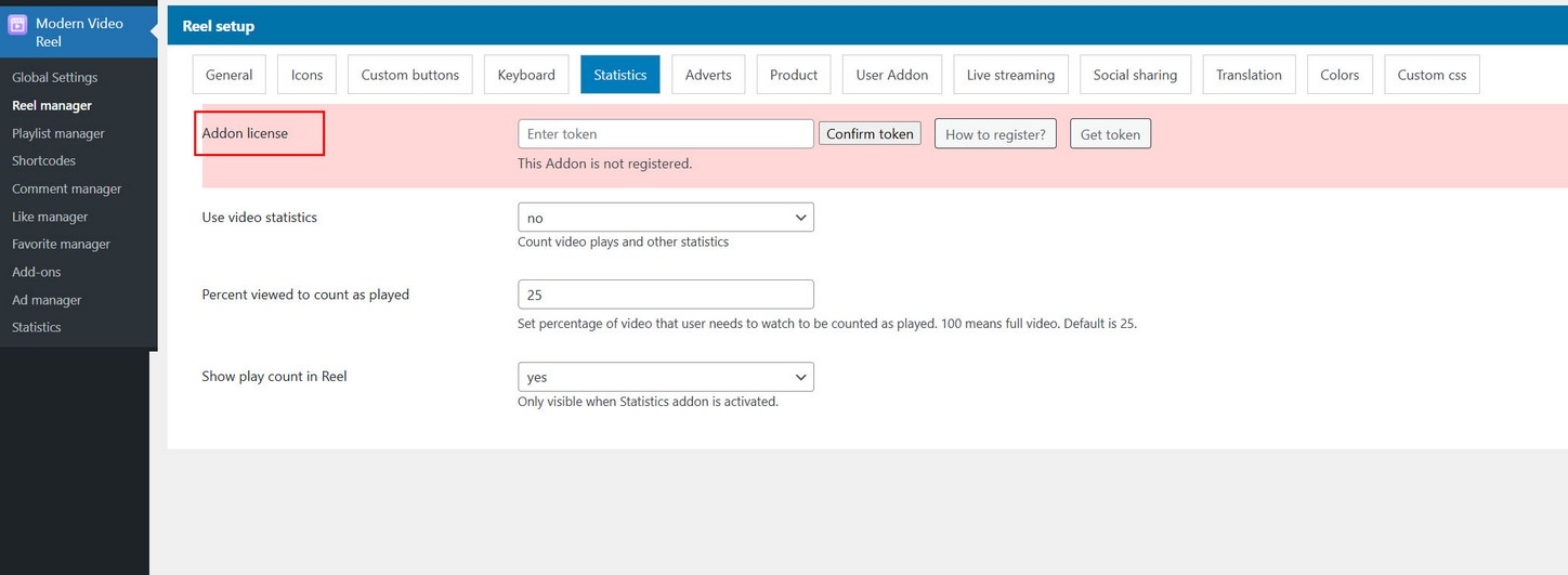 Register plugin inside Reel manager / Edit Reel / Statistics tab