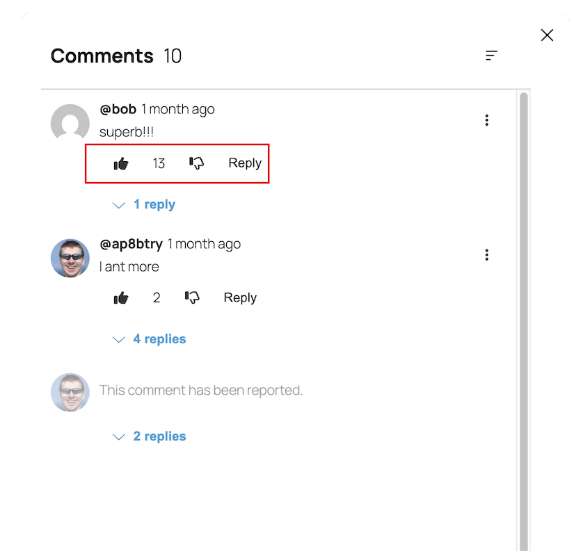 Commenting is unlimited, meaning there are main comments and comment replies.