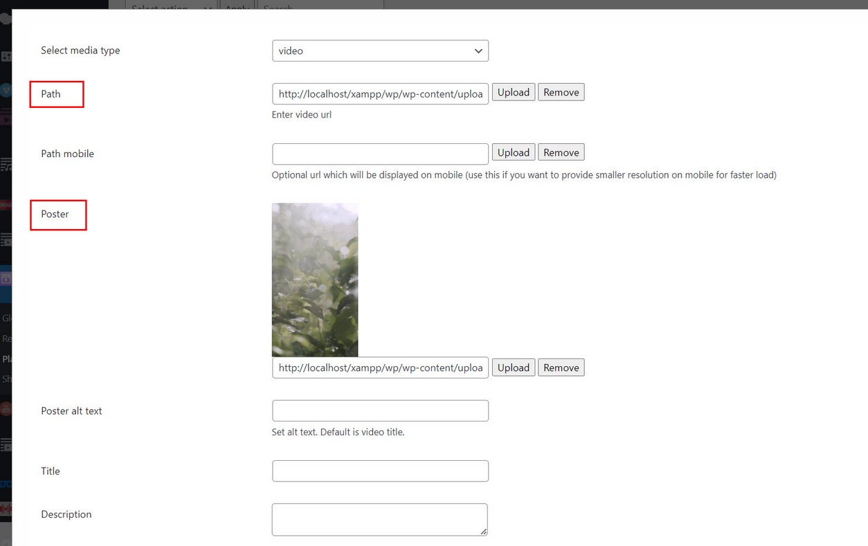 Using poster is recommended with video files. Make sure videos and poster images are the same dimensions.