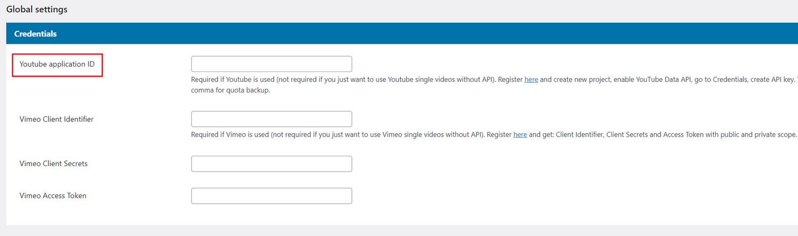 1. Vimeo requires API key, register new application: https://developer.vimeo.com/apps/new