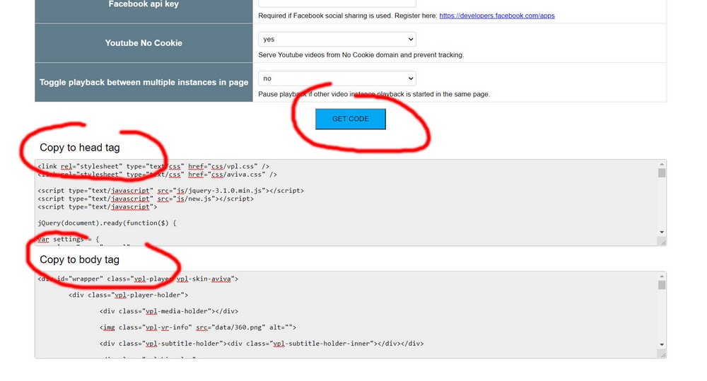Note: After you generate code, if you use self hosted videos you still need to manually edit video url. The same is true for subtitles. The code will generate something like this, note how path and subtitles src have their url set. You need to manually adjust this to link to your videos!