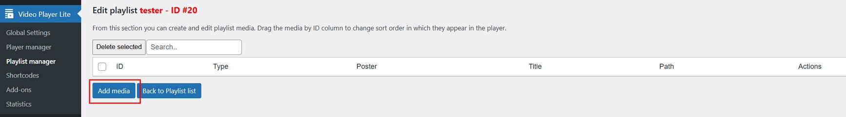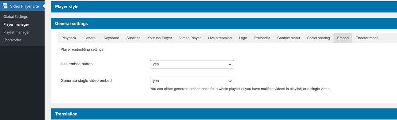 Note: When you create a player and a playlist in such way, they are saved and can be accessed and edited later in Player Manager and Playlist Manager section.