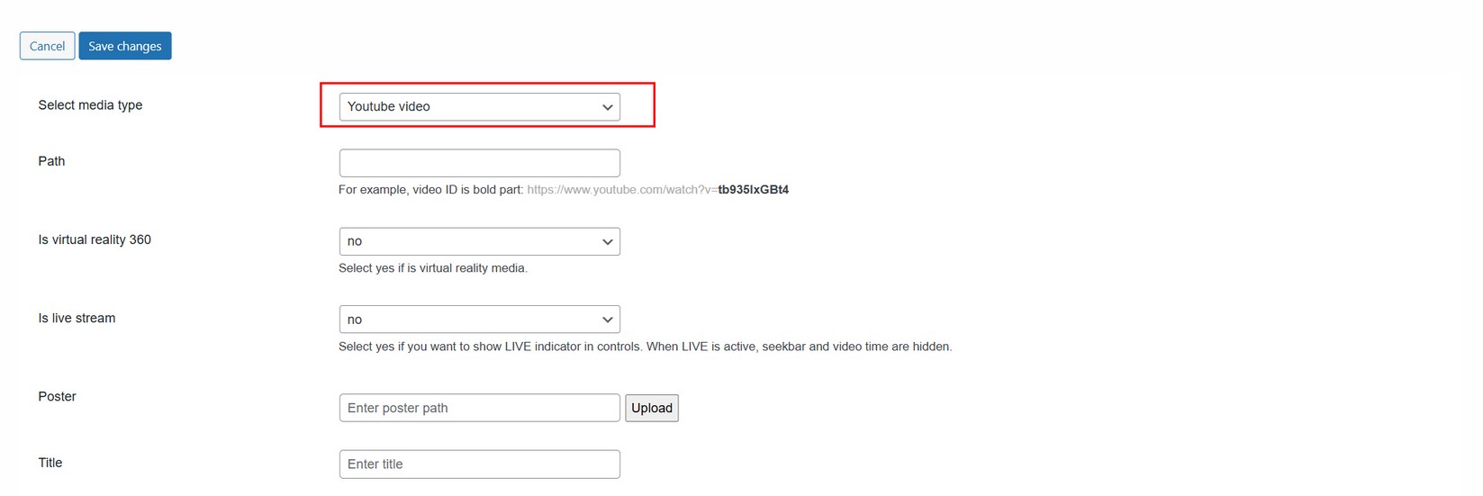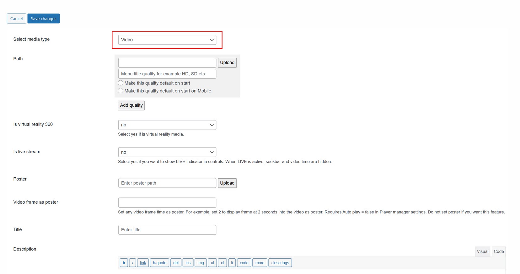 To add video to Player, in Edit Playlist choose Add media, and choose video type: