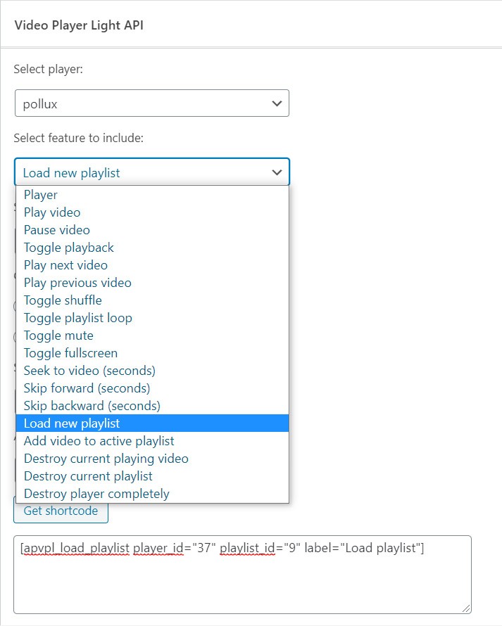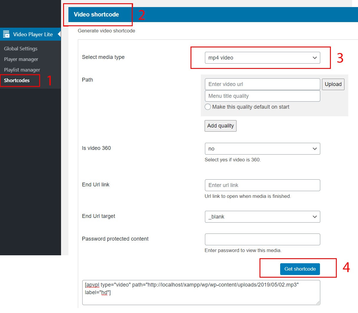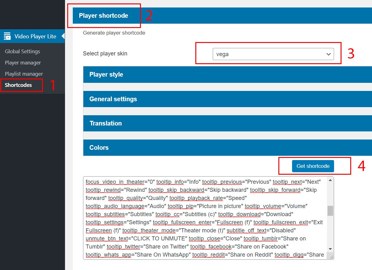Note: if you want video shortcode included with this player shortcode, first generate video shortcode, then generate player shortcode.