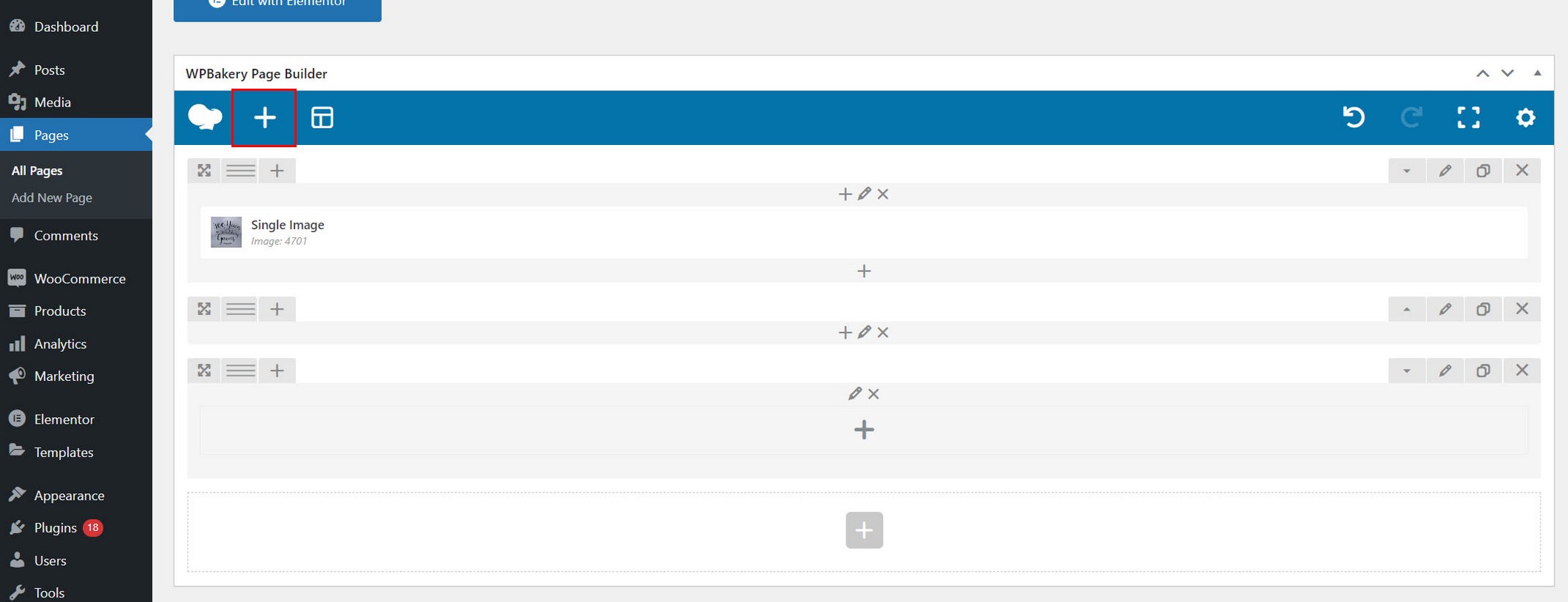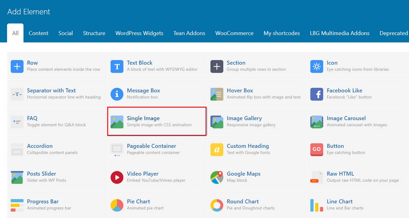 1. Add some king of element on the page (image, text...) which when clicked will open player in lightbox. We used image in this example. Search image in WPBakery widgets and drag it to page.