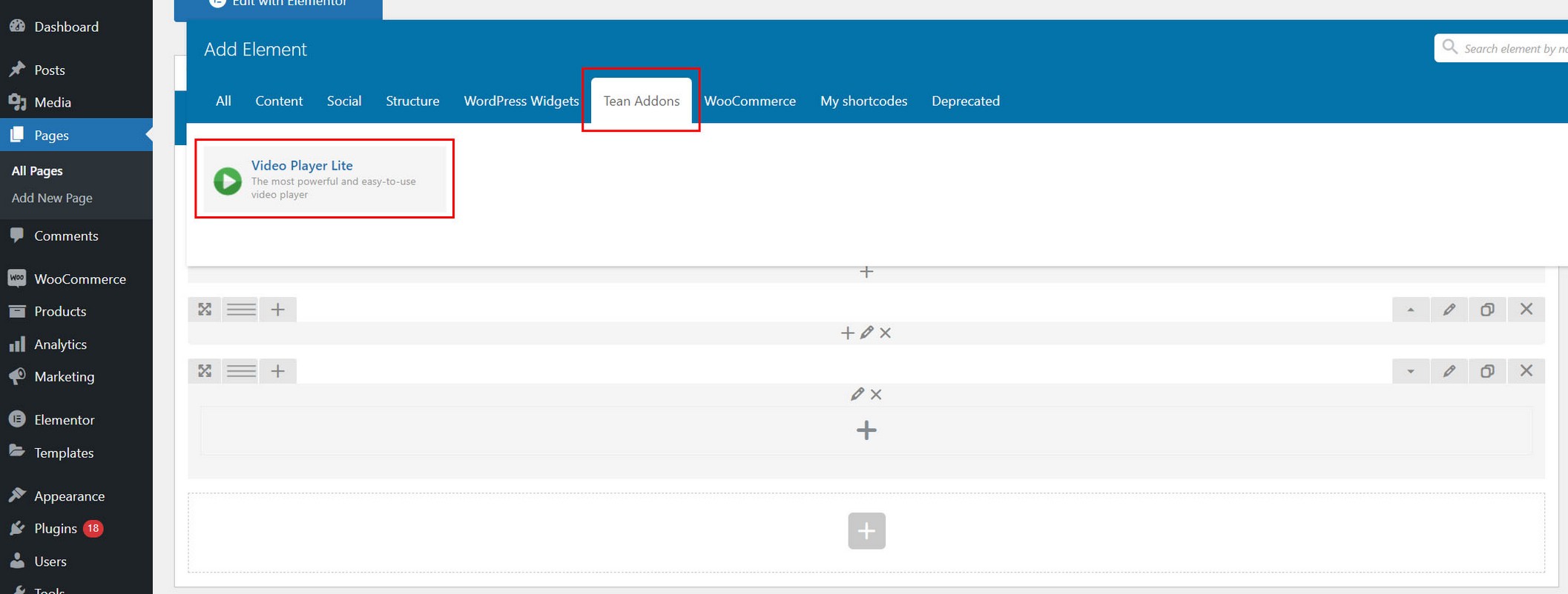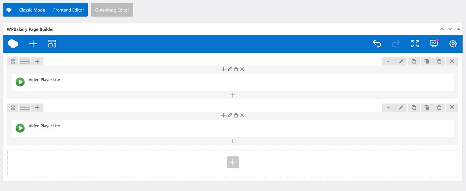In WPBakery page editor go to add new element and search for Video Player Lite.