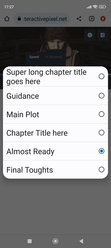 This feature is activated by clicking on chapter toggle button in player controls. This will display chapters on mobile in following way: