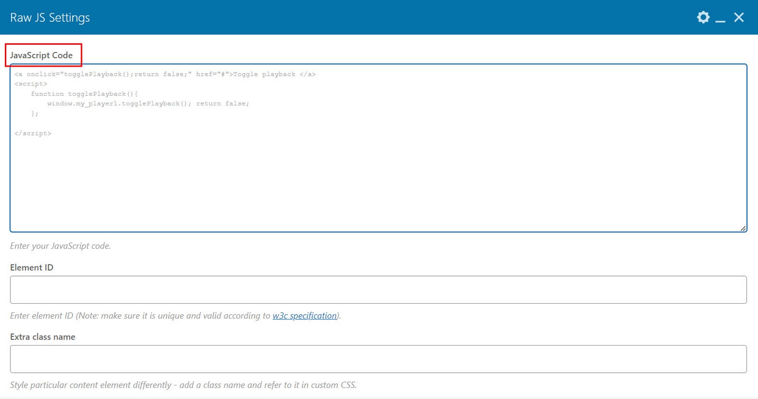 <a onclick="togglePlayback();return false;" href="#">Toggle playback </a>