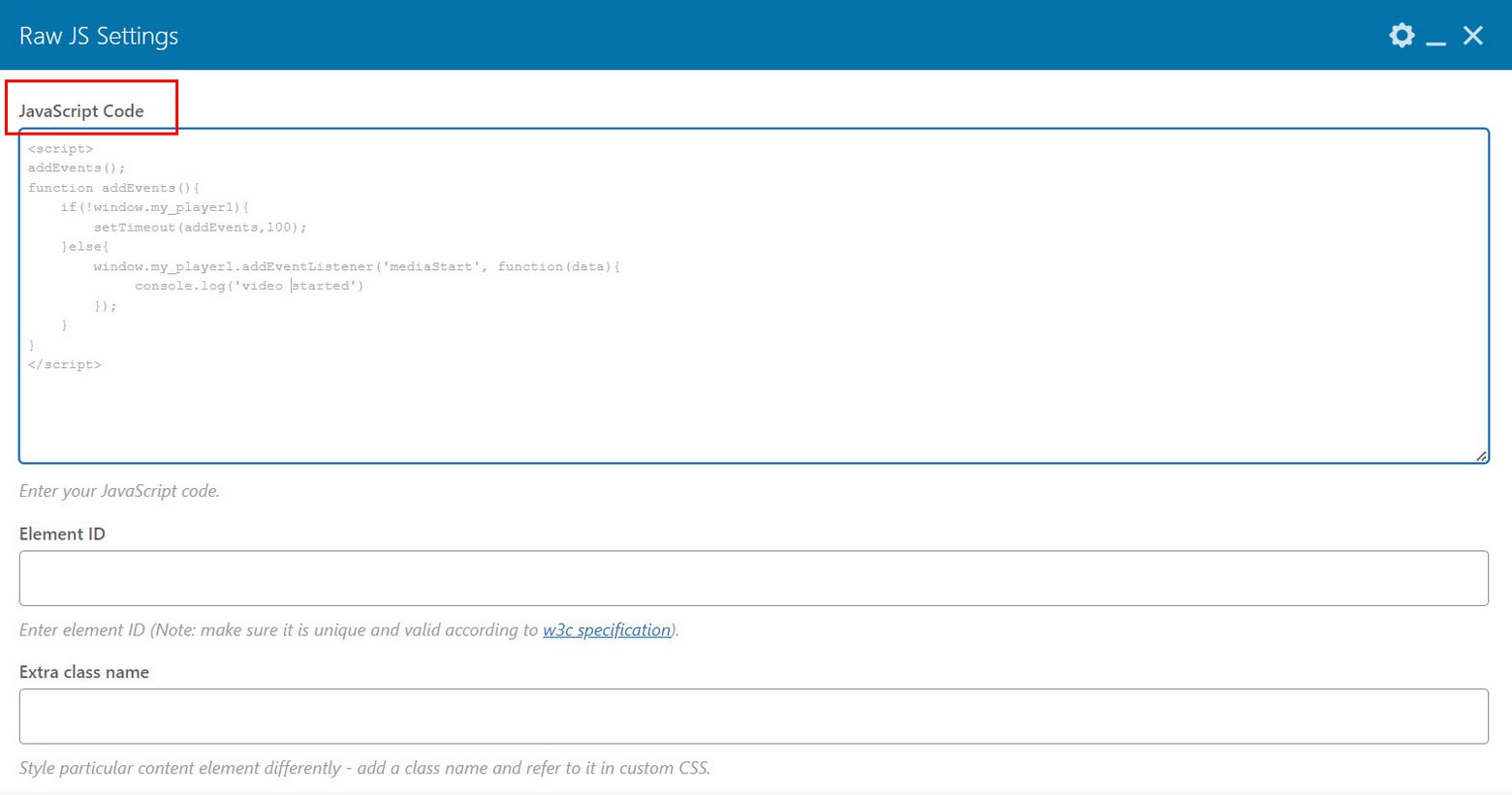 Then you add your own CSS for what you want to happen in theater mode, in this case, we make player 100% wide.