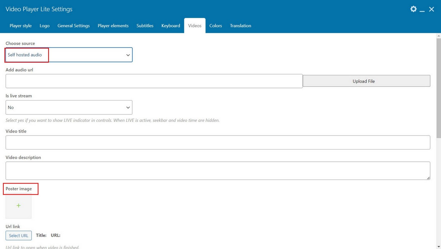Note that when you add audio to player, you can also add poster which is shown while the audio plays.