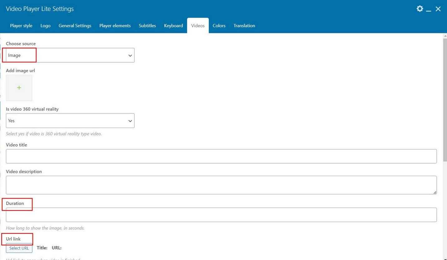 Note that when you add image to player, you can also add specify duration in seconds for how long to display image. This can be used in combination with Url link (open url link on finish)