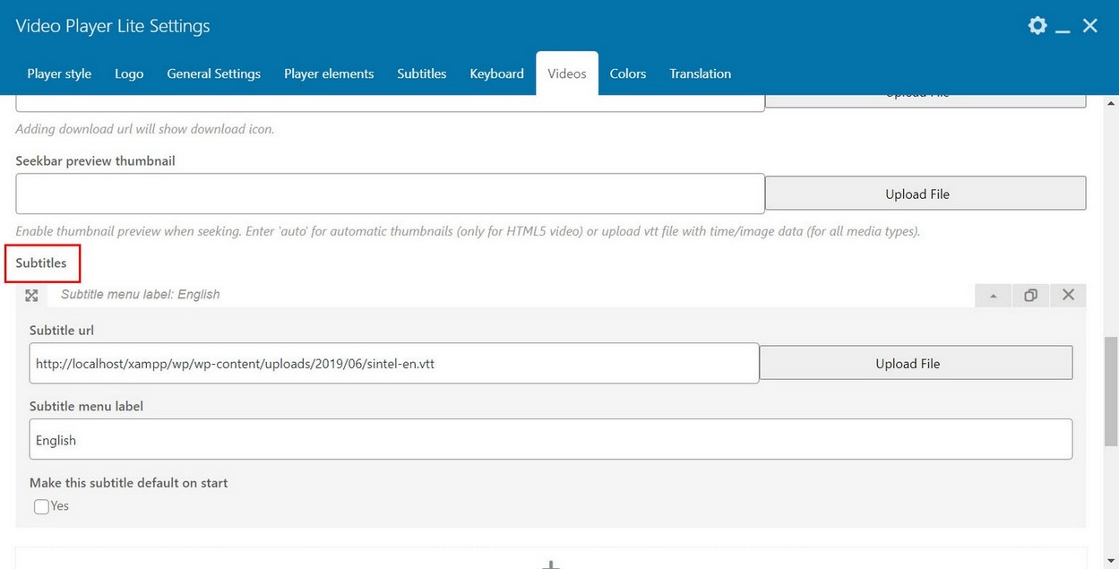 Add subtitles to video inside Video tab: