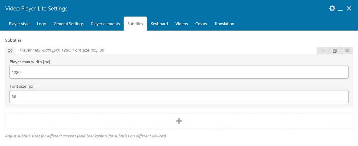 https://developer.mozilla.org/en-US/docs/Web/API/WebVTT_APIYou can adjust subtitle breakpoins inside Subtitle tab: