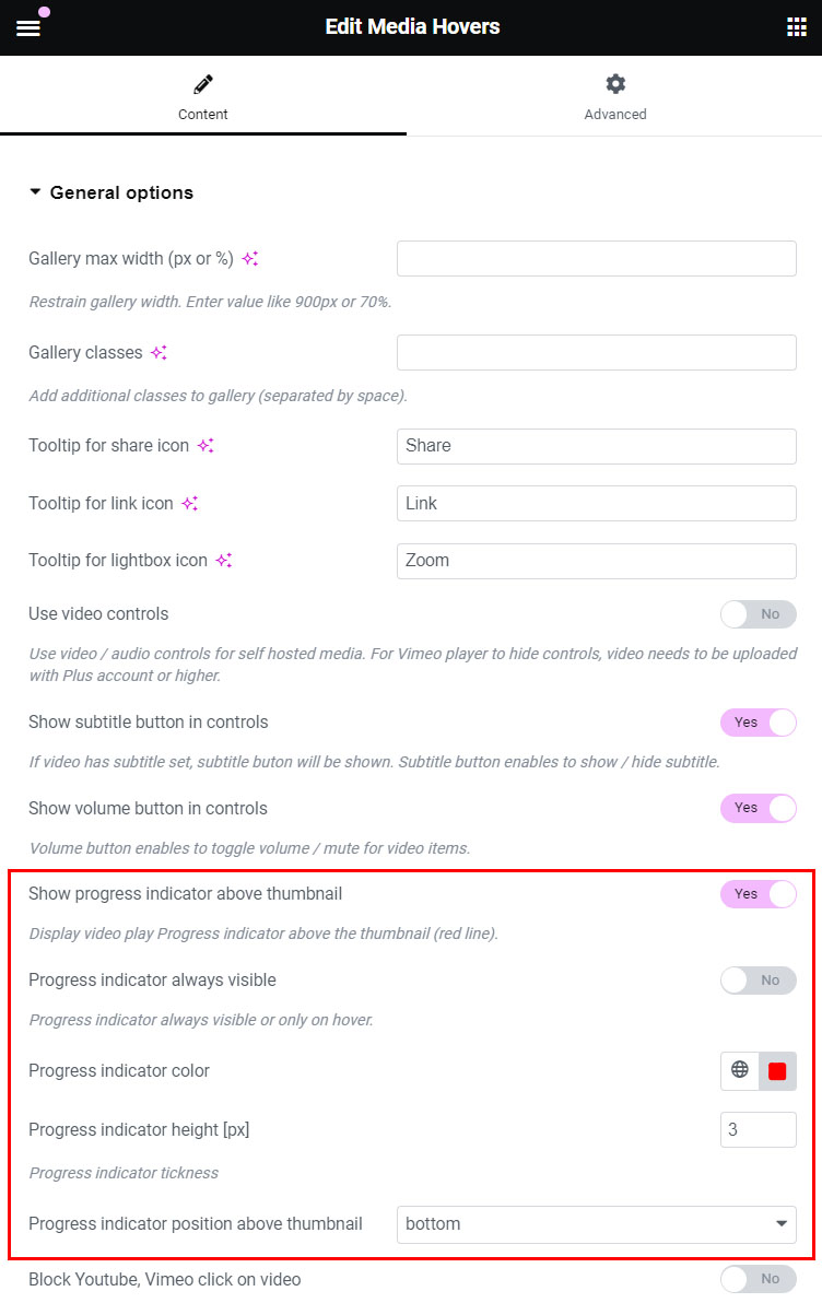 Note: if you use "apply to thumbnail" and you have link or lightbox defined and you are using Youtube or Vimeo videos, you should use this option as well: