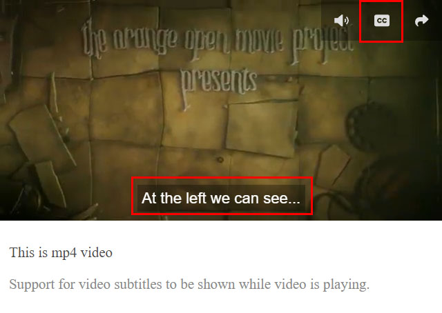 Subtitles are available for self hosted video, Youtube, Vimeo and audio. Supported formats for subtitles are vtt or srt.