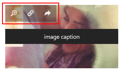 Control icons are shown somewhere above the image (depending on the skin used). These icons are lightbox icon (if lightbox source is set on image), link icon (if url link is set on image), share icon (if social sharing is used).