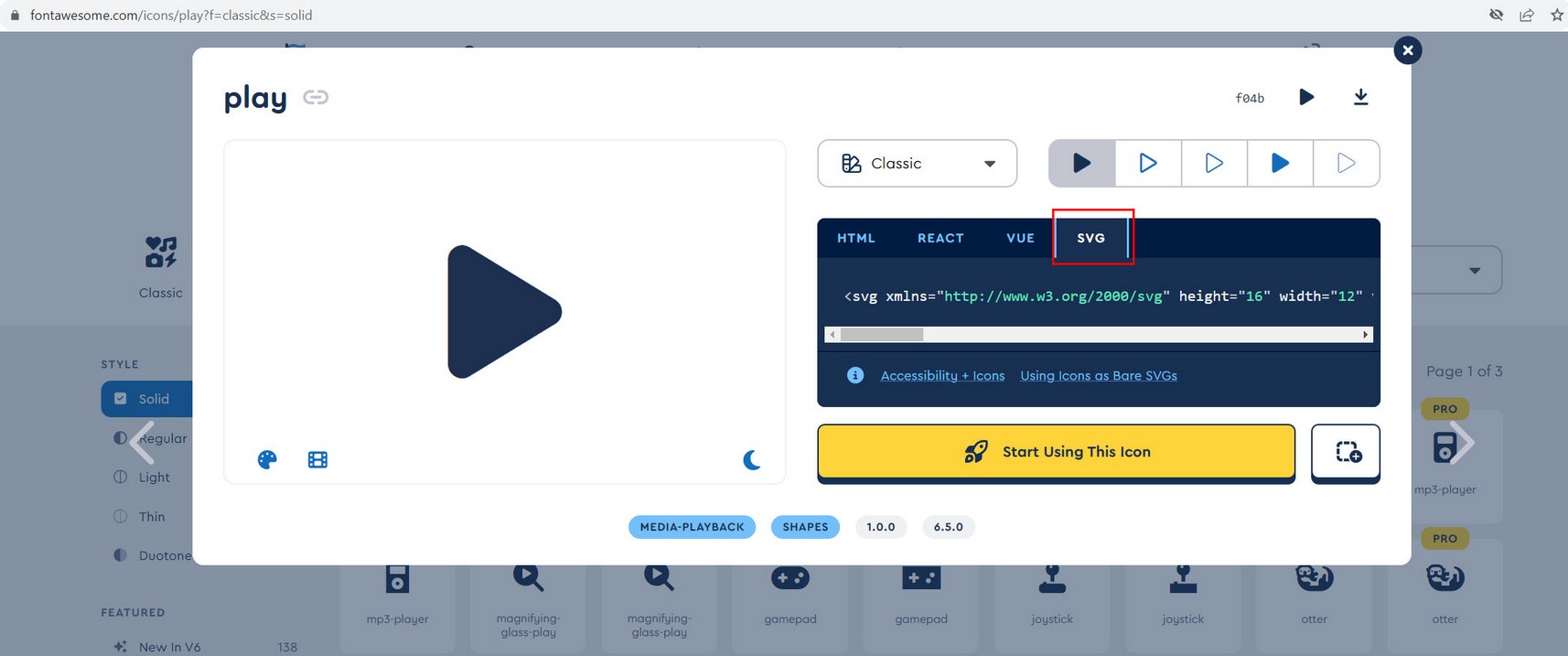 To get SVG code, for example, go to Font Awesome page, choose icon and copy SVG code. Of course you can get SVG code from different websites.