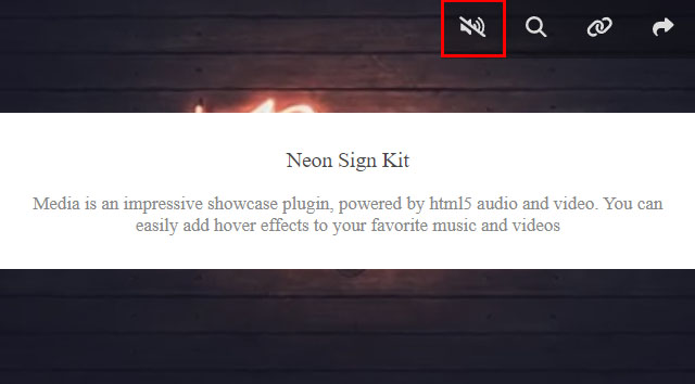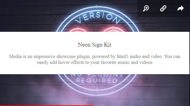 Aside from media playback that can happen on hover or click, each image can have link or ligthbox attached. By default video will start playing when mouse enters image area. And if you add link or lightbox url to the image, icon will be created which open url or lightbox on click. You can choose in settings which element will trigger each action. Note that you cannot have playback, lightbox and link attached to the same element!