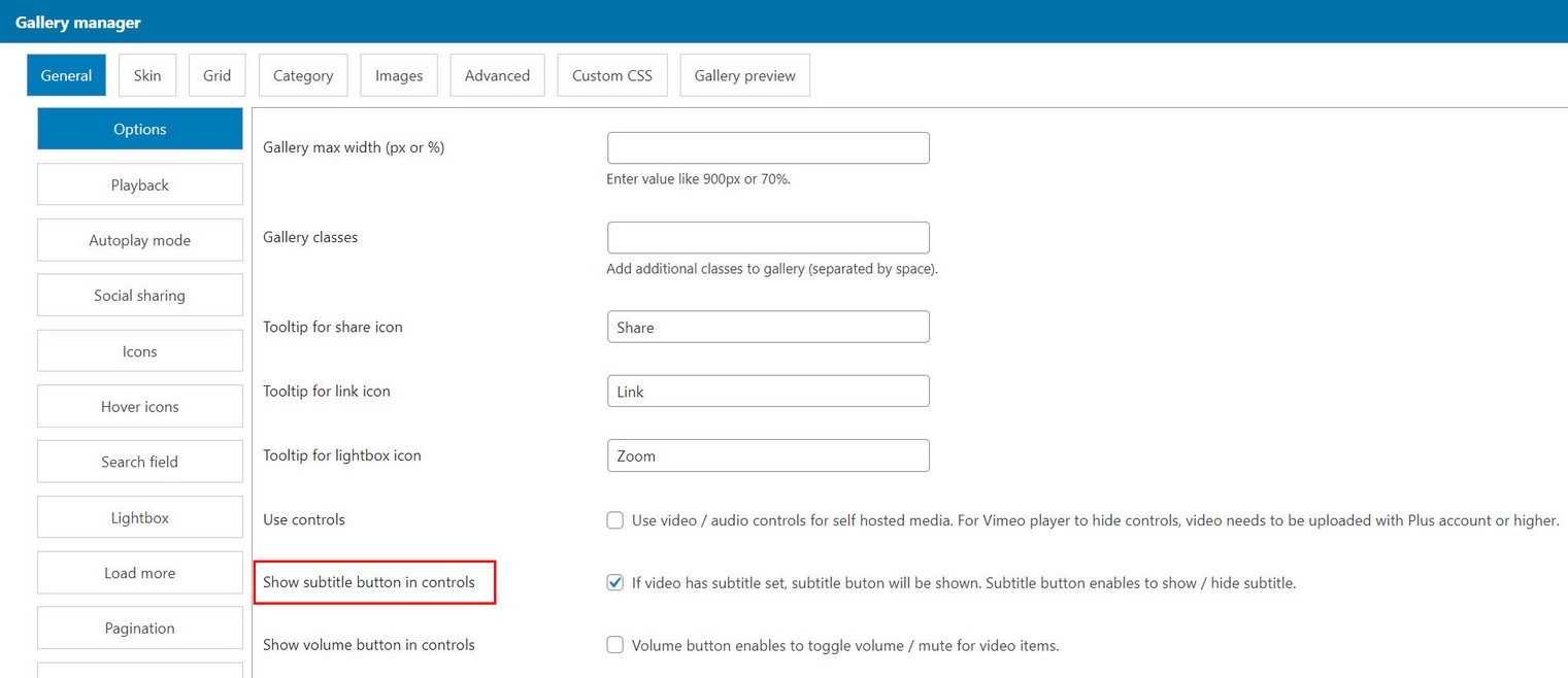 Custom css for the gallery can be entered in Custom CSS tab in Edit gallery.