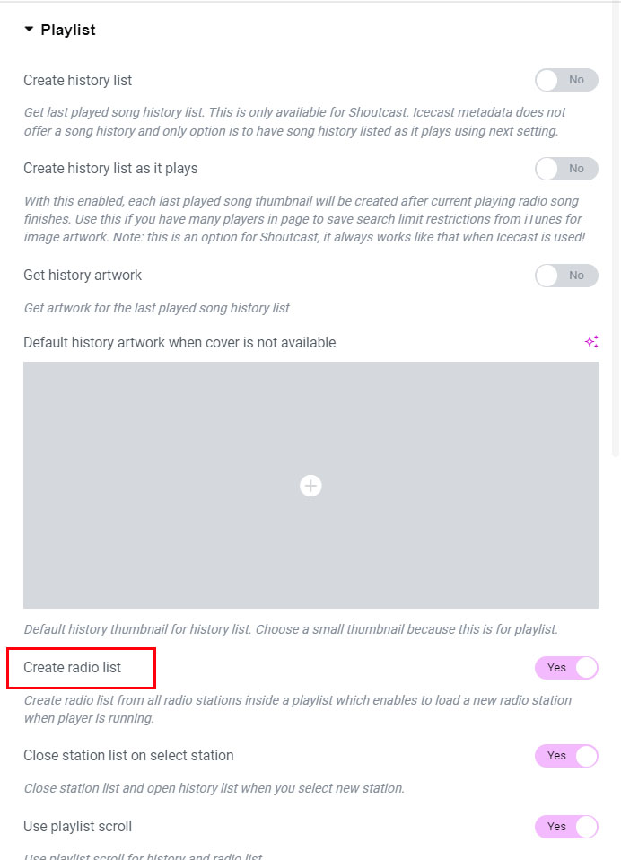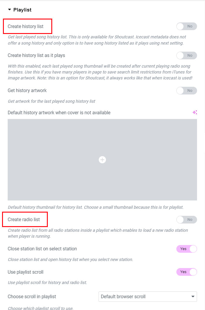 When you want to retrieve player artwork, and artwork for the history list (if you use history) you can choose between the following: