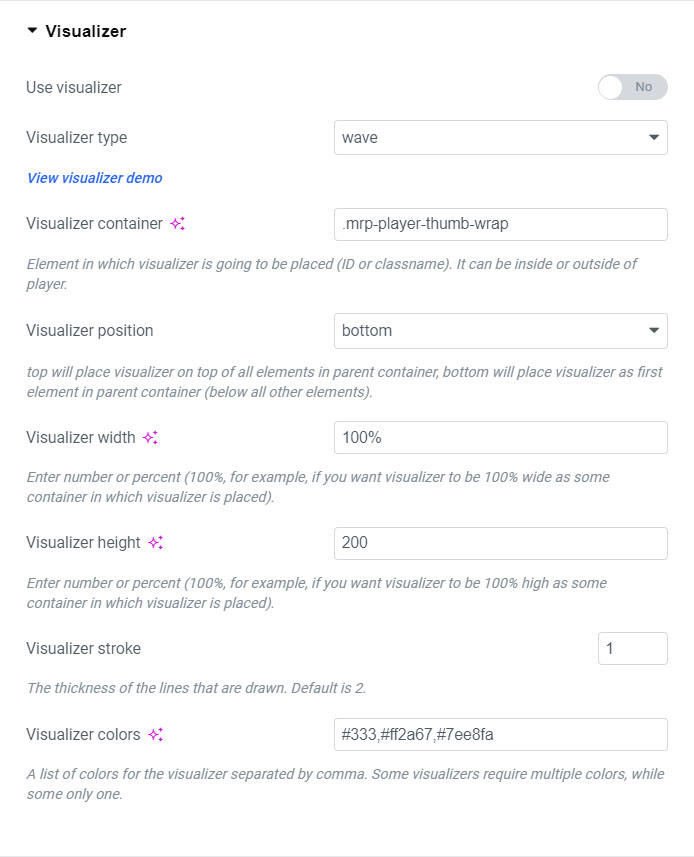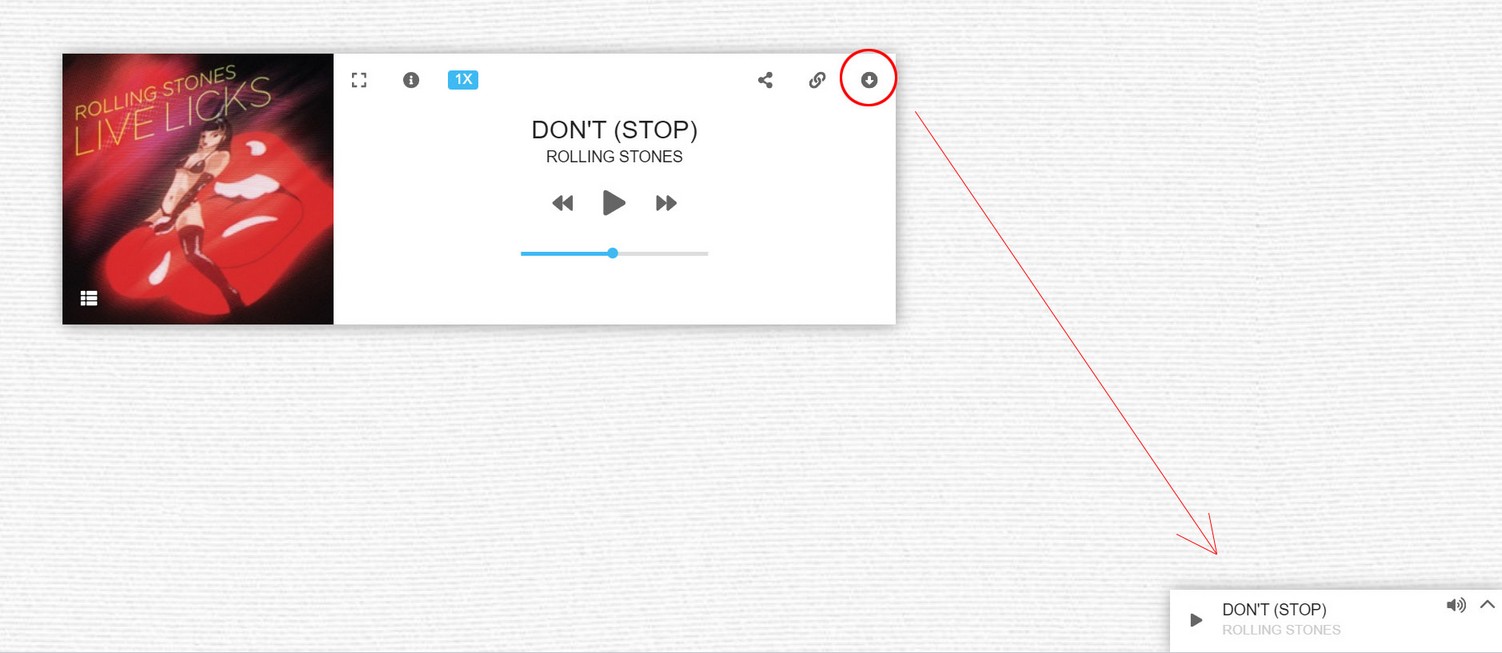 Mini player version allows to switch between normal and mini player fixed to page bottom. Only available for skin default, modern, artwork. Not compatible with minimize on scroll player option! If you have minimize on scroll on scroll selected, there will be no mini player available! Also, mini player is not available in popup window.