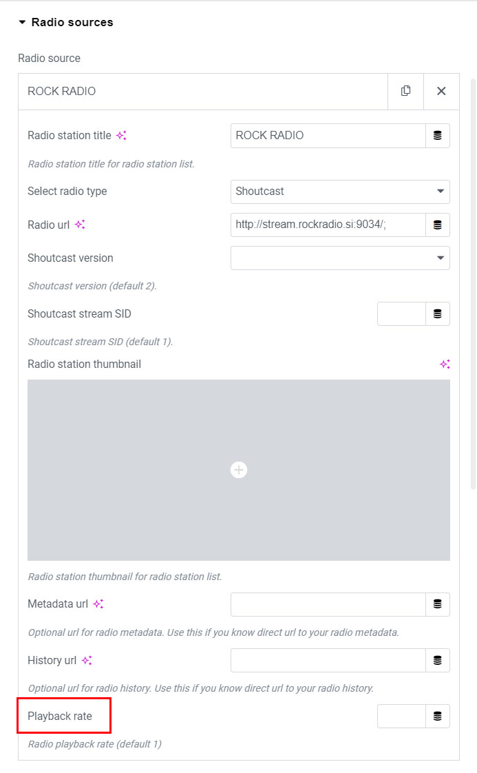 Note that you can also set playback rate on the individual radio station When adding radio station to playlist in Edit Playlist / Add new radio station