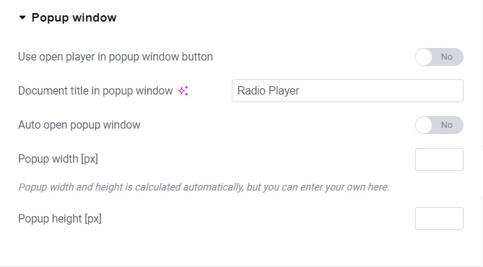 Note: when using player in popup, its restricted to one player per page.