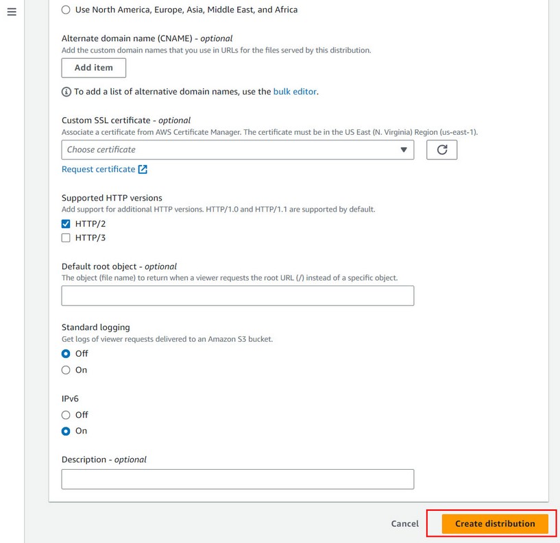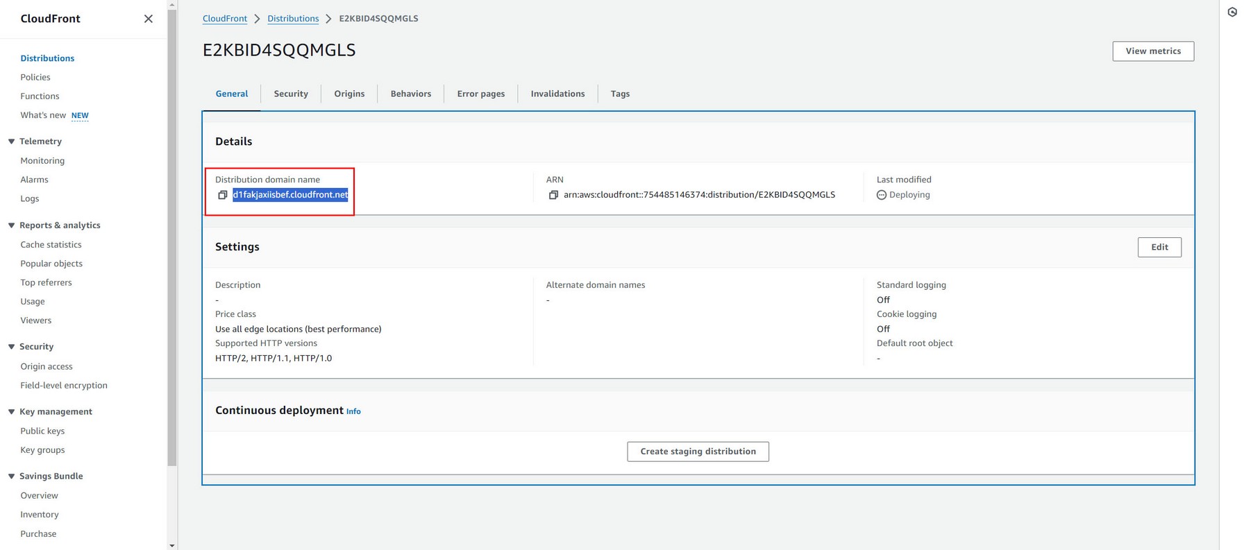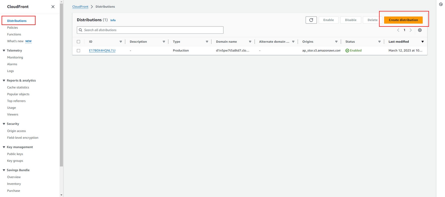 Sign in to the AWS Management Console and open the CloudFront console at https://console.aws.amazon.com/cloudfront/v3/home