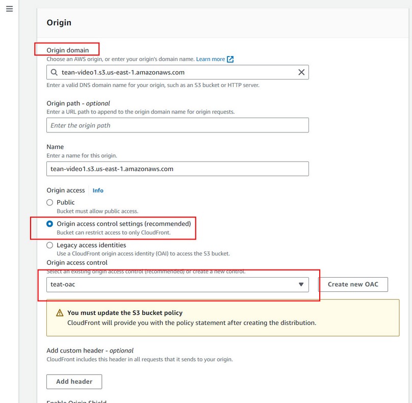 Under Origin domain choose the Amazon S3 bucket you want to connect with this distribution.