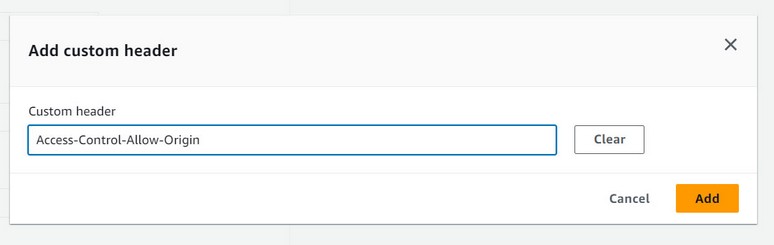 Under Cache key and origin requests select Legacy cache settings, choose Include the following headers, click Add custom button, and paste this as custom header inside: Access-Control-Allow-Origin