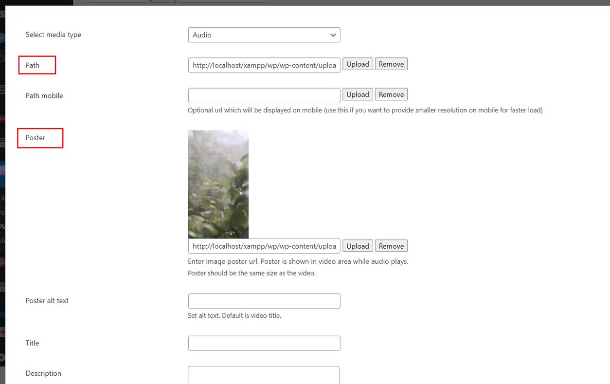 Using poster is recommended with video files. Make sure videos and poster images are the same dimensions.