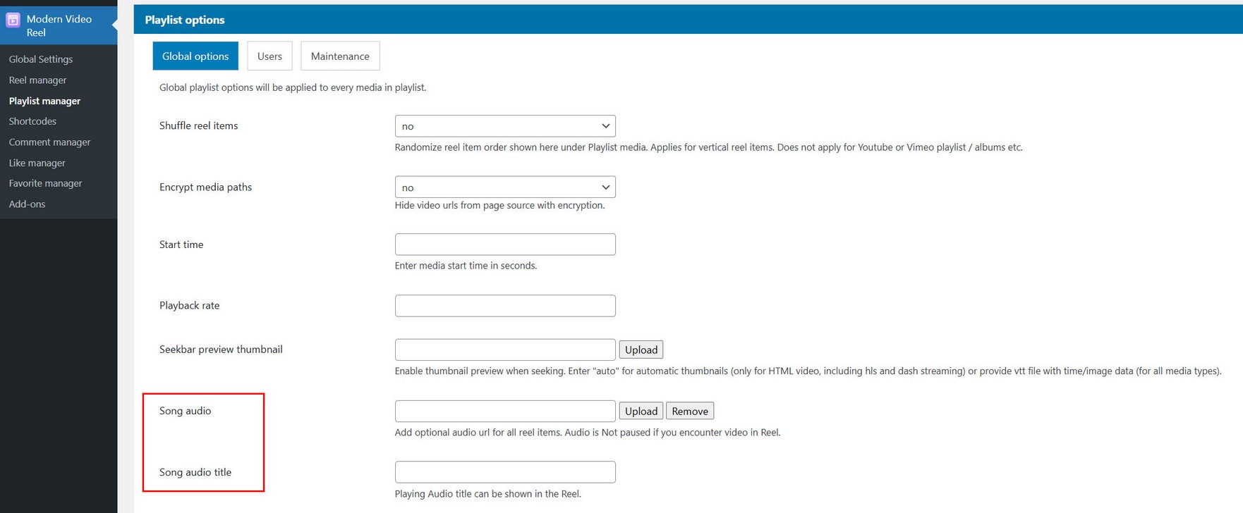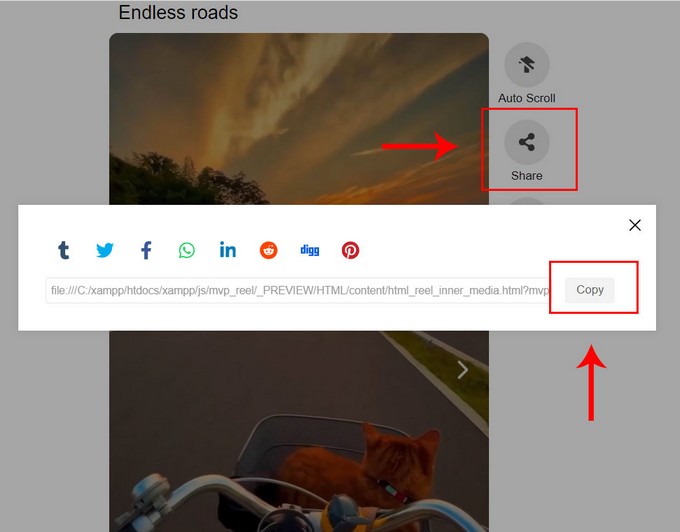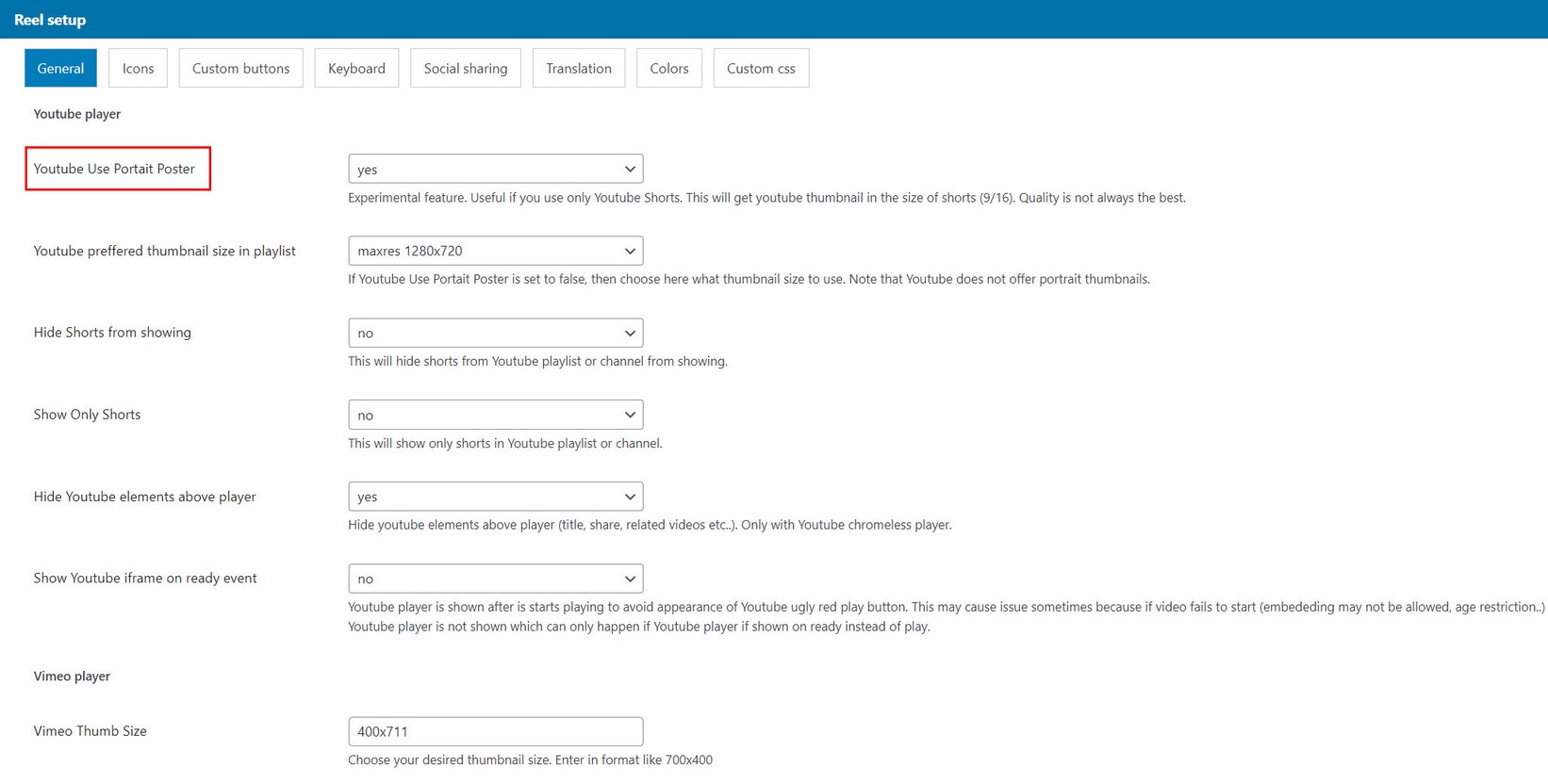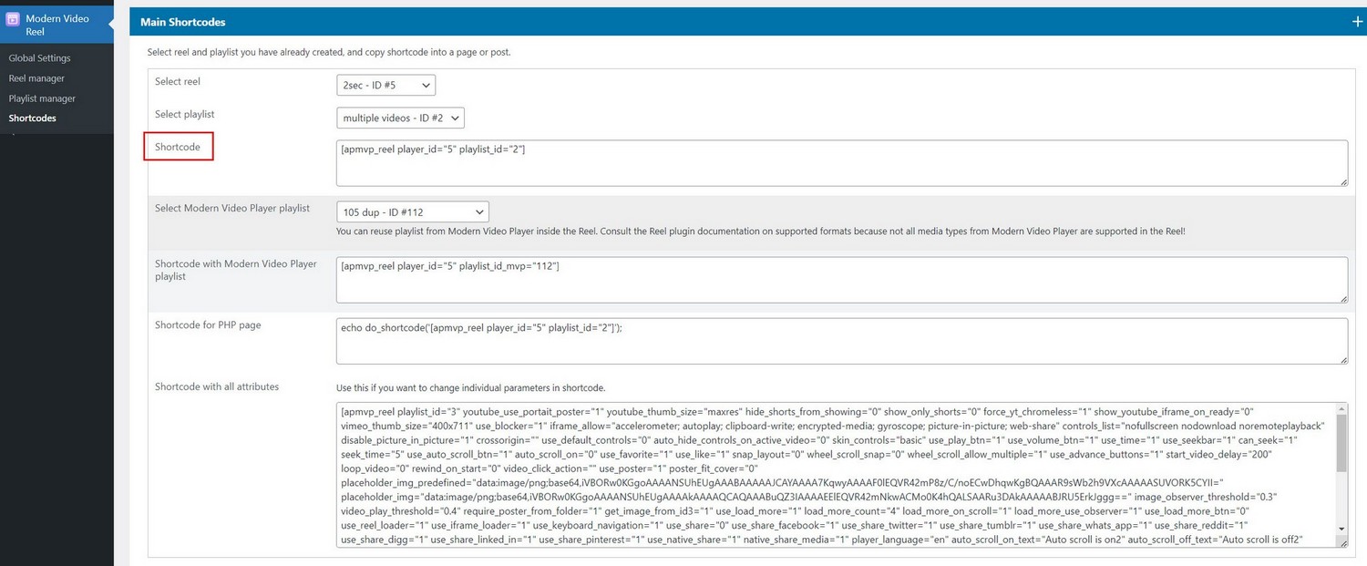 Once you have created new Reel and playlist, Go to Shortcodes plugin menu and get shortcode (choose reel and playlist for your shortcode):