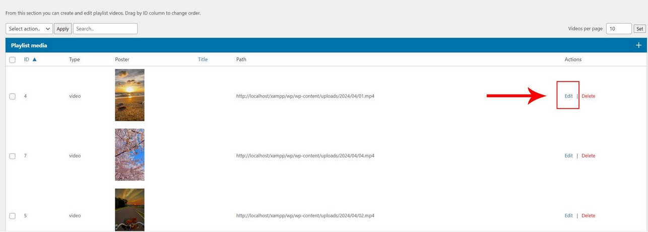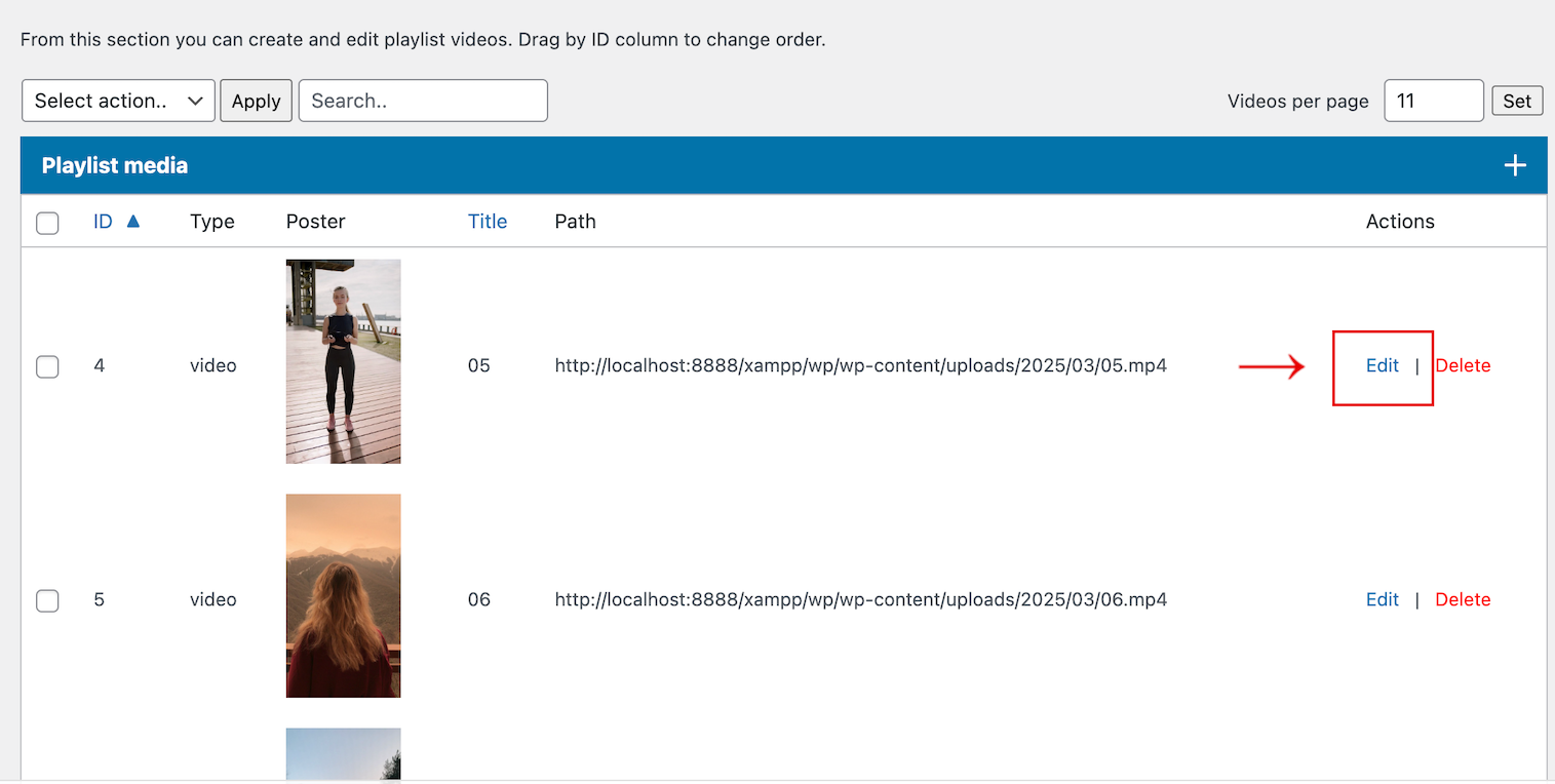 Add videos to Reel items in Edit Playlist / Add media dialog: