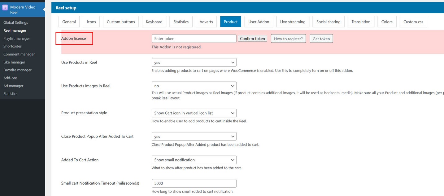 Register plugin inside Reel manager / Edit Reel / Live Streaming tab