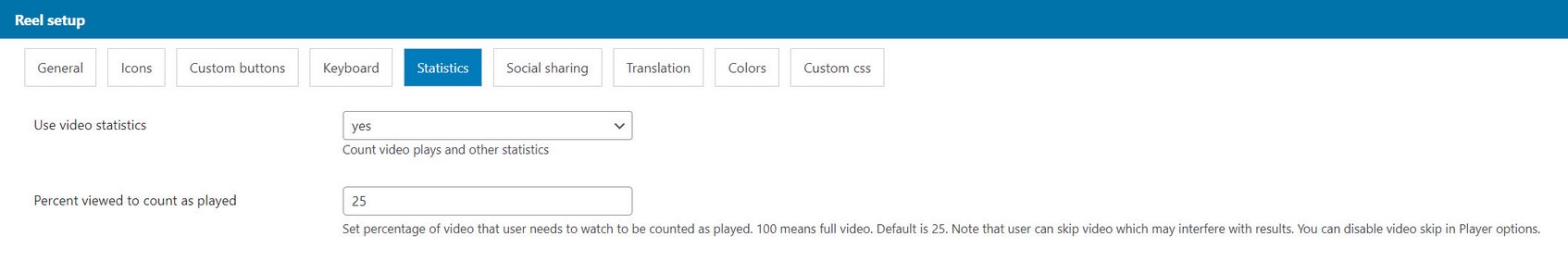 Access Statistics settings in Reel Manager / Edit Reel / Statistics tab.