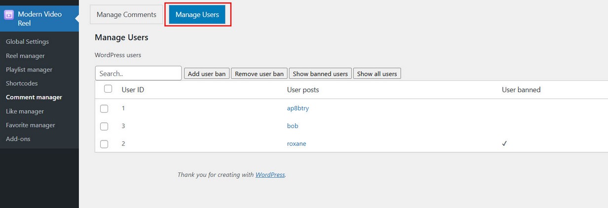 Admin has its own menu in the plugin where he can see and manage all comments.